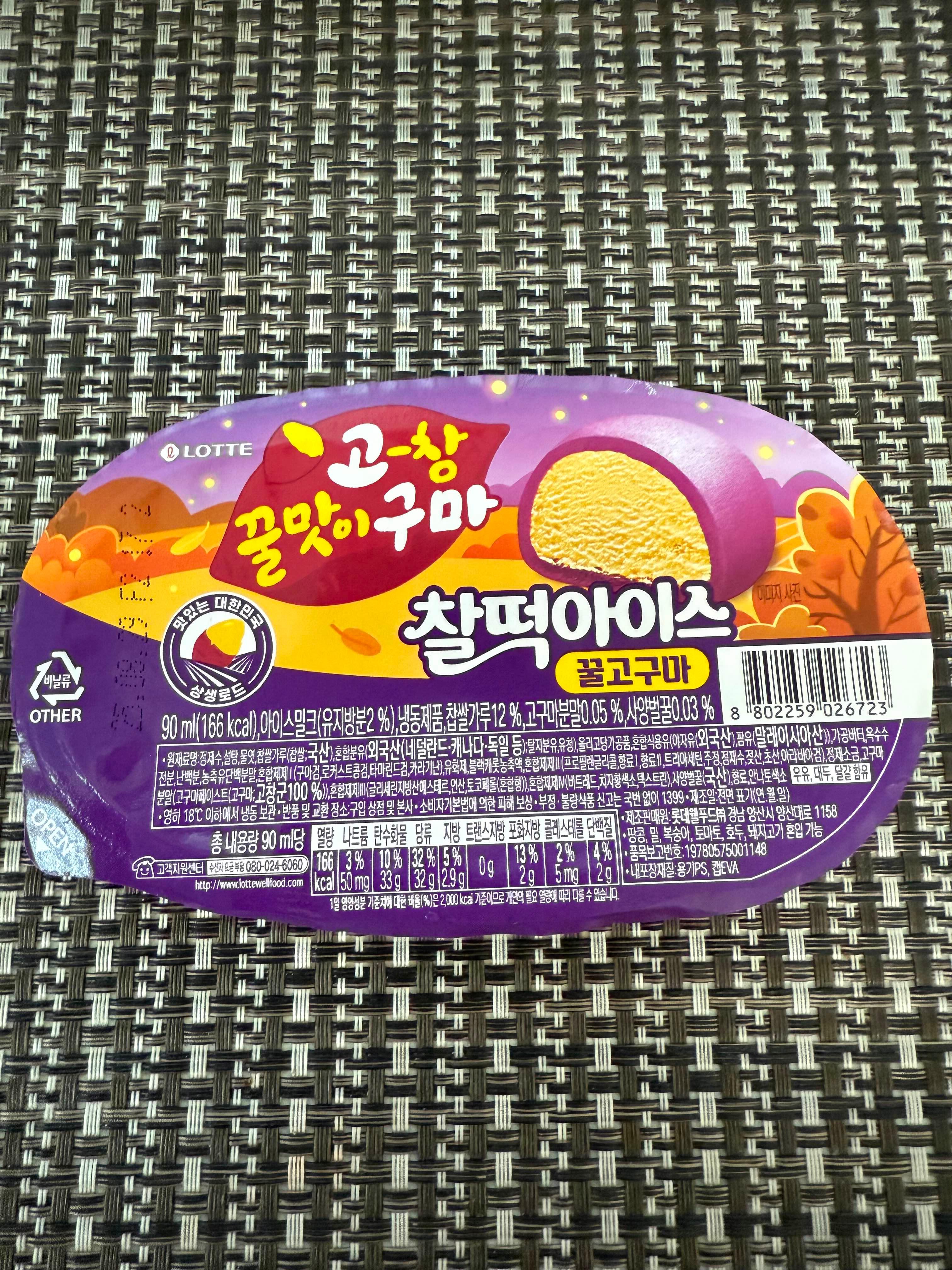 마지막을 장식할 제품은 롯데 찰떡아이스 꿀고구마맛이야.