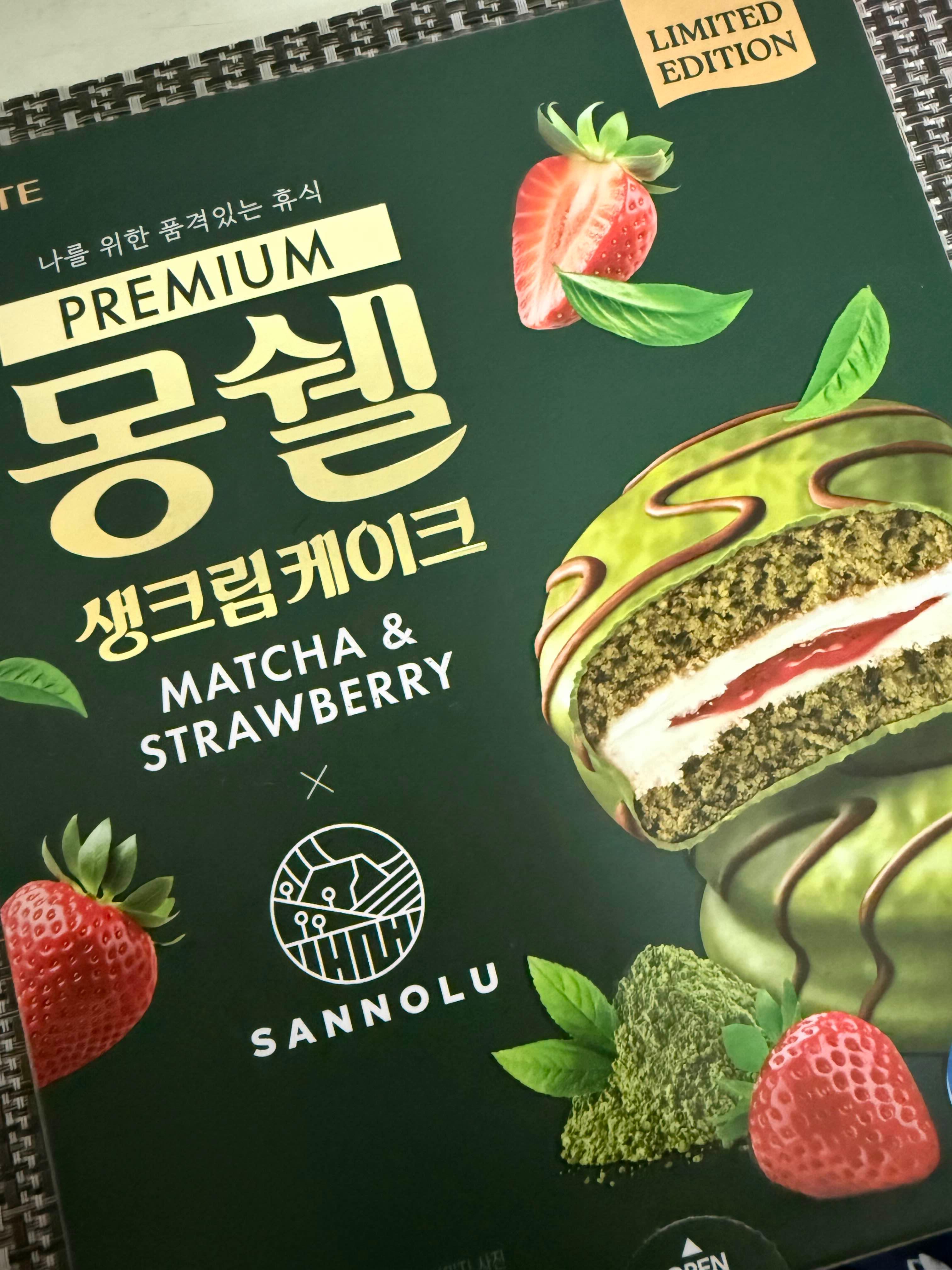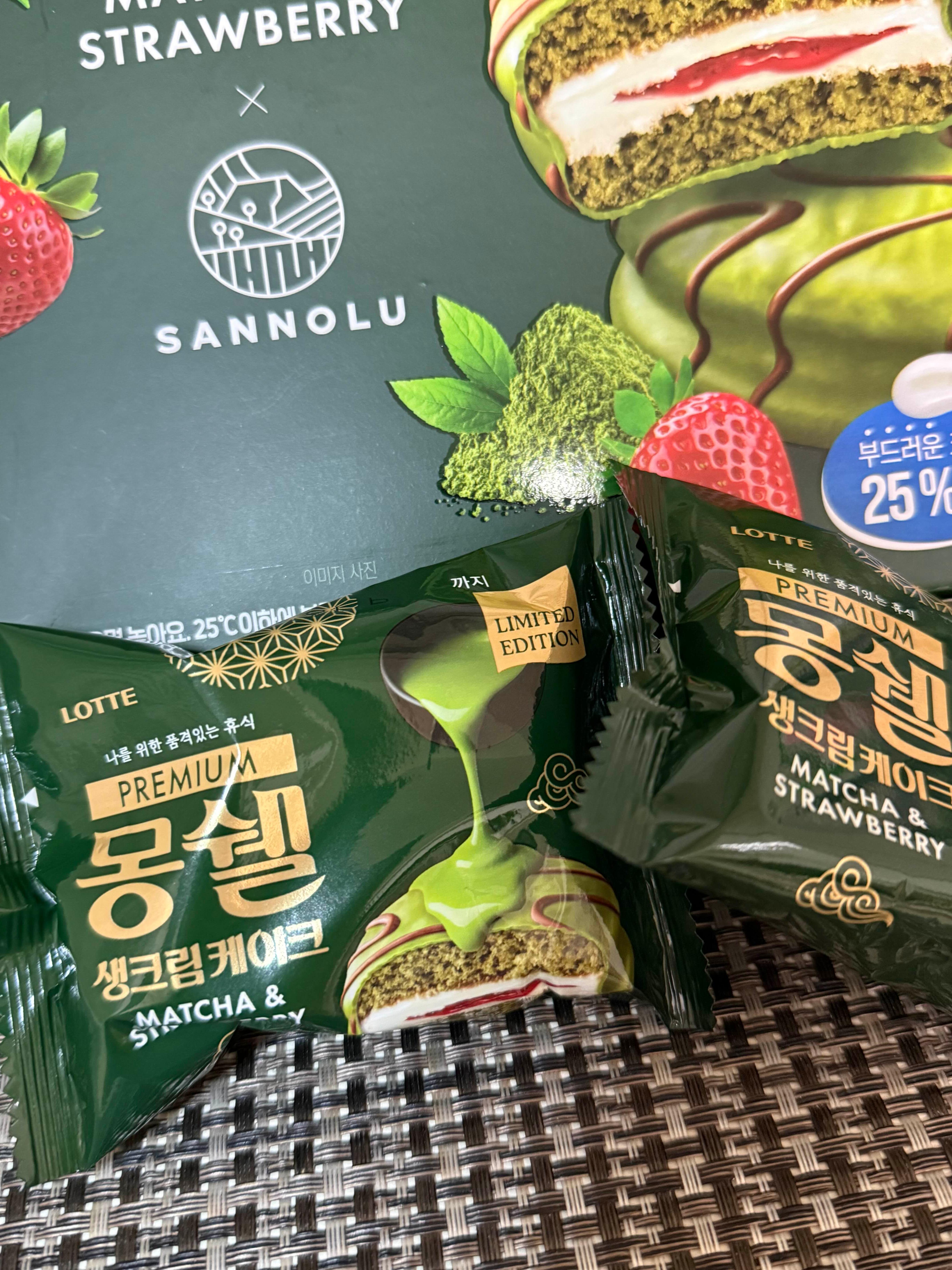 👉 “녹차의 깊은 향과 딸기의 달콤함이 완벽하게 어우러진 프리미엄 몽쉘!”