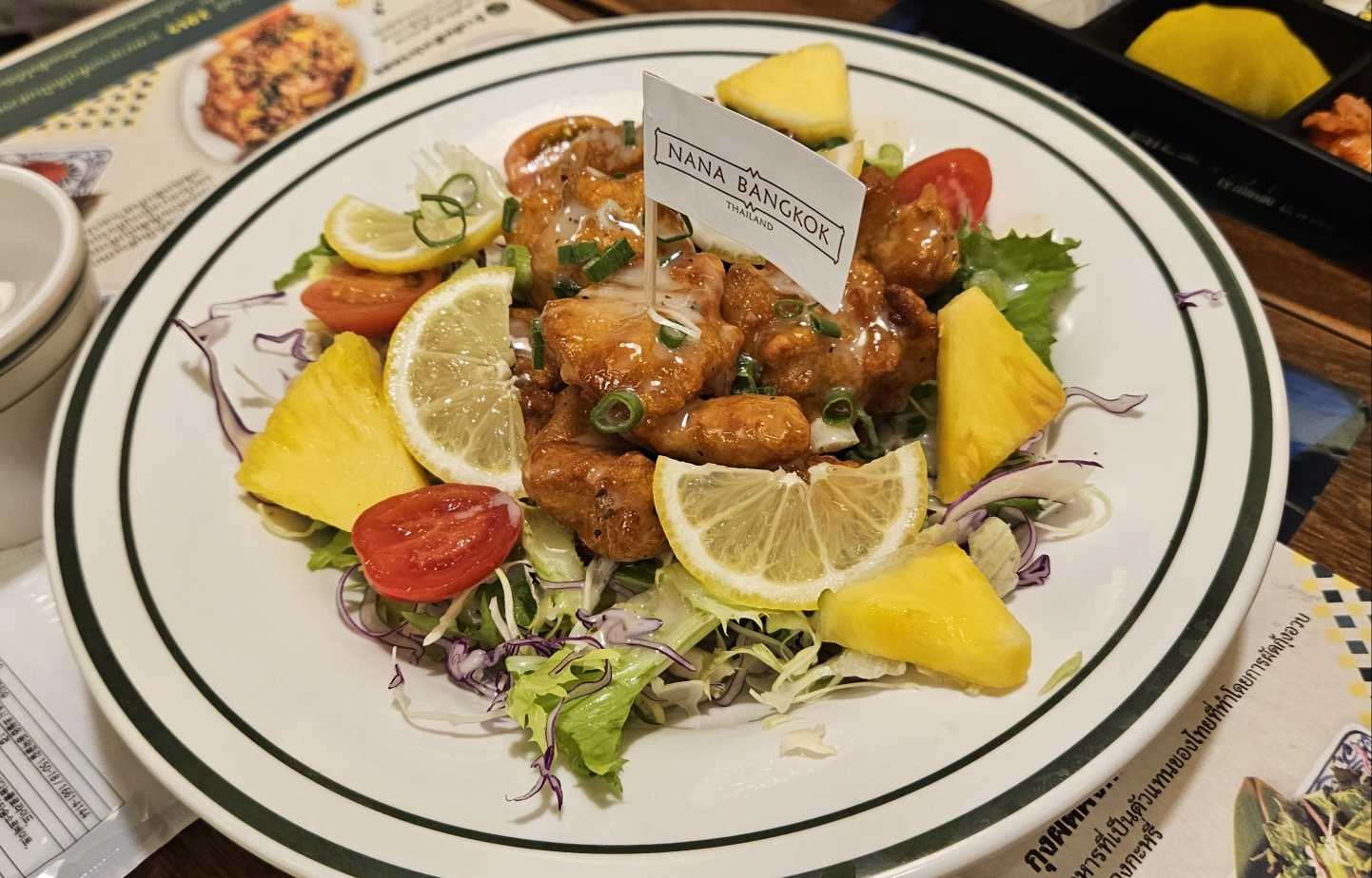✔️ 레몬크림치킨 샐러드(네이버이벤트) – 달콤한 크림 드레싱과 파인애플, 치킨이 조화로운 상큼한 샐러드