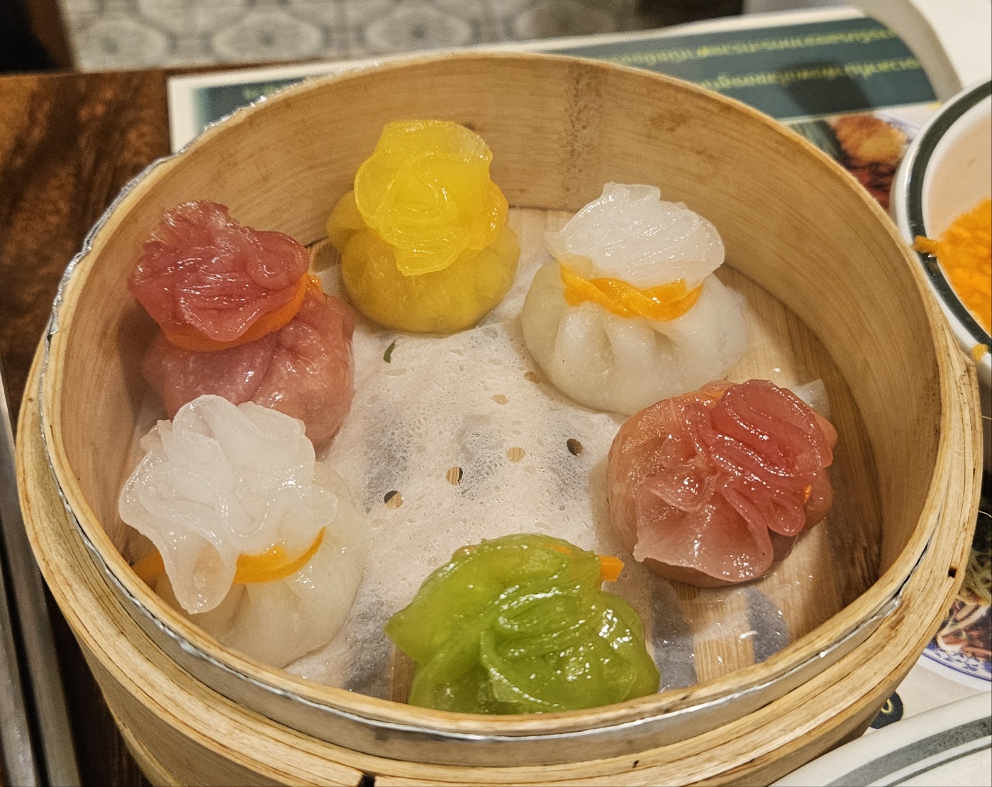 ✔️ 꽃모양 새우 딤섬 – 다양한 색감과 모양이 귀여운 딤섬, 속은 부드러운 새우