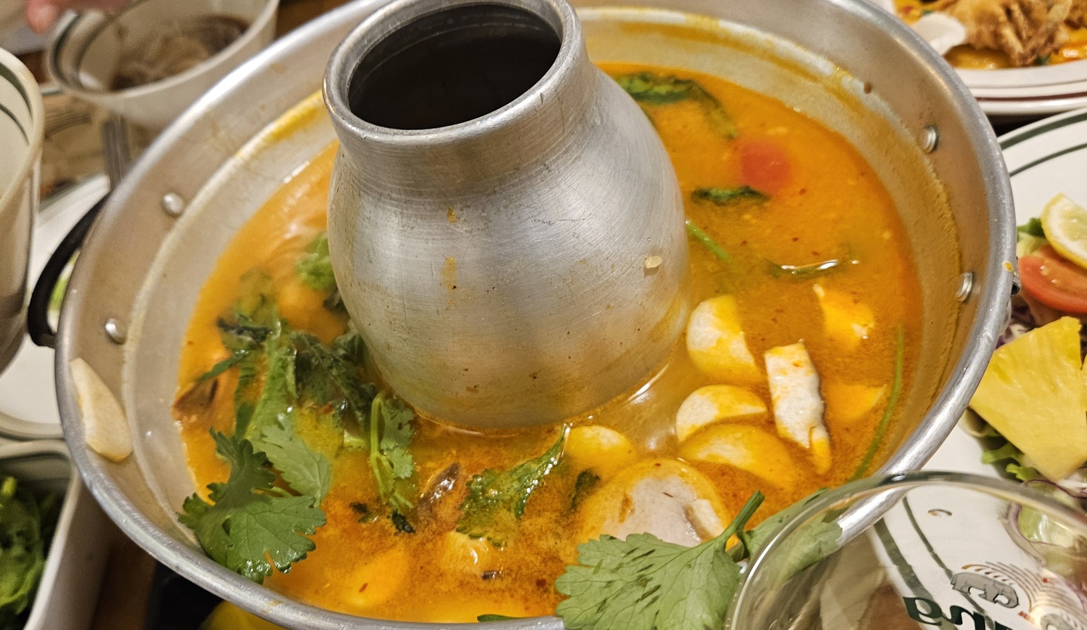 ✔️ 똠얌꿍(20,000원) – 새우와 버섯, 고수가 푸짐하게 들어간 정통 똠얌꿍, 시큼하고 얼큰한 맛