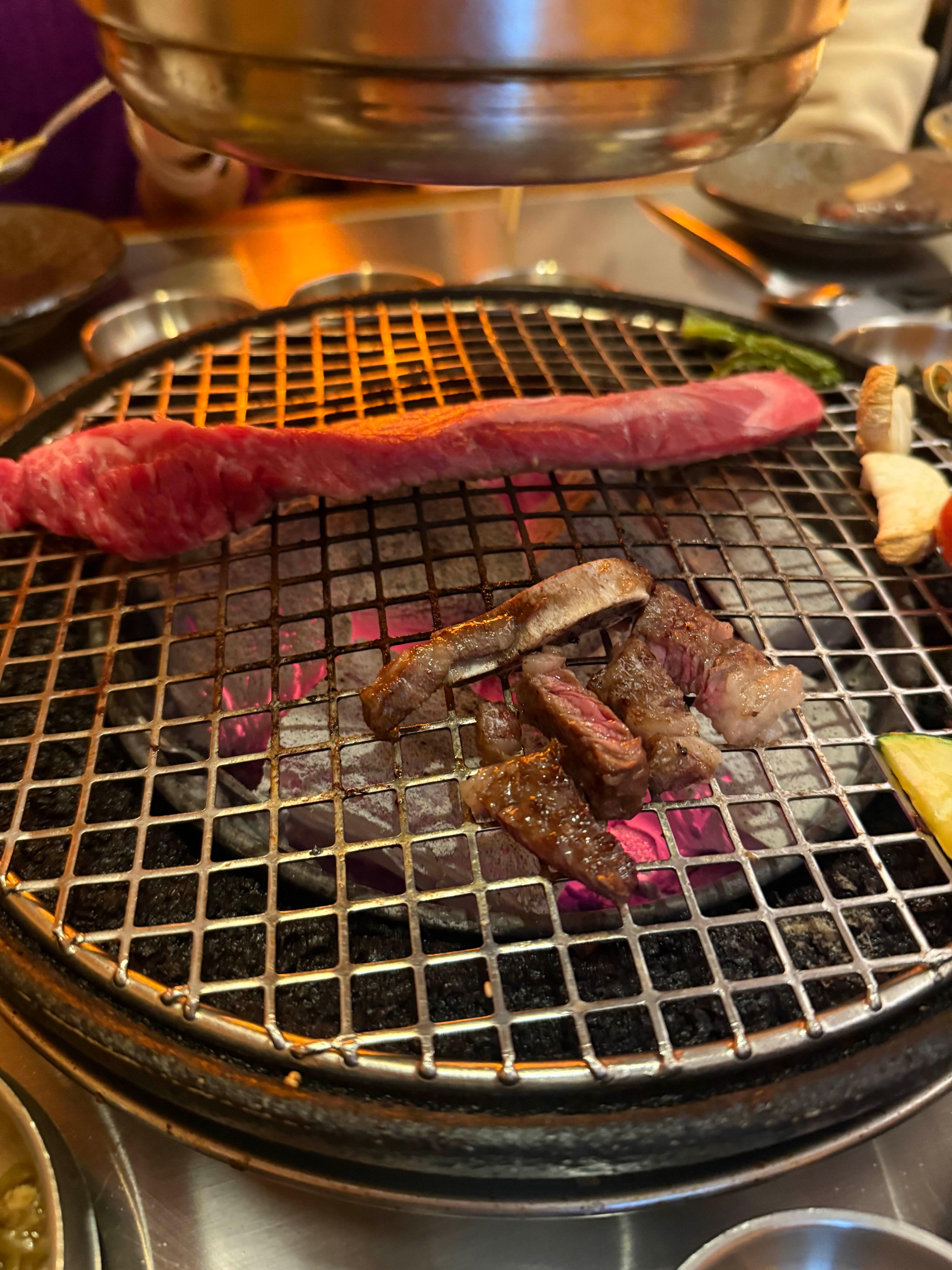 불판 위 정성스레 구워지는 고기, 곁들임까지 완벽했던 저녁