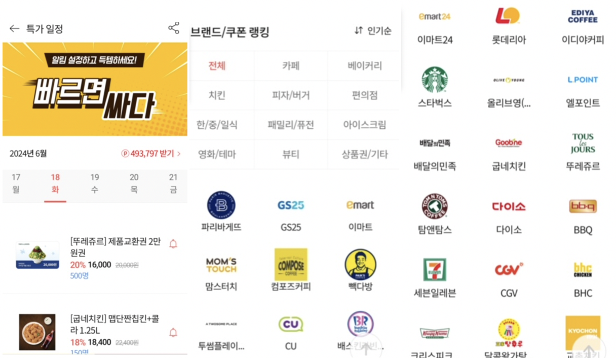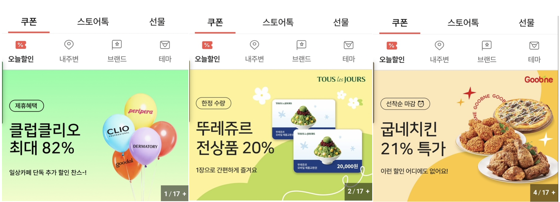 ( 스타벅스, 투썸플레이스, 올리브영, GS25, 롯데리아, 다이소 등등)