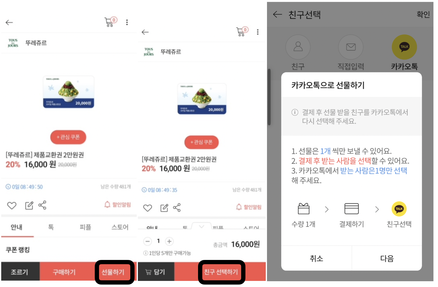 카카오톡이 선물하기가 되면서, 할인을 받을 수 있는