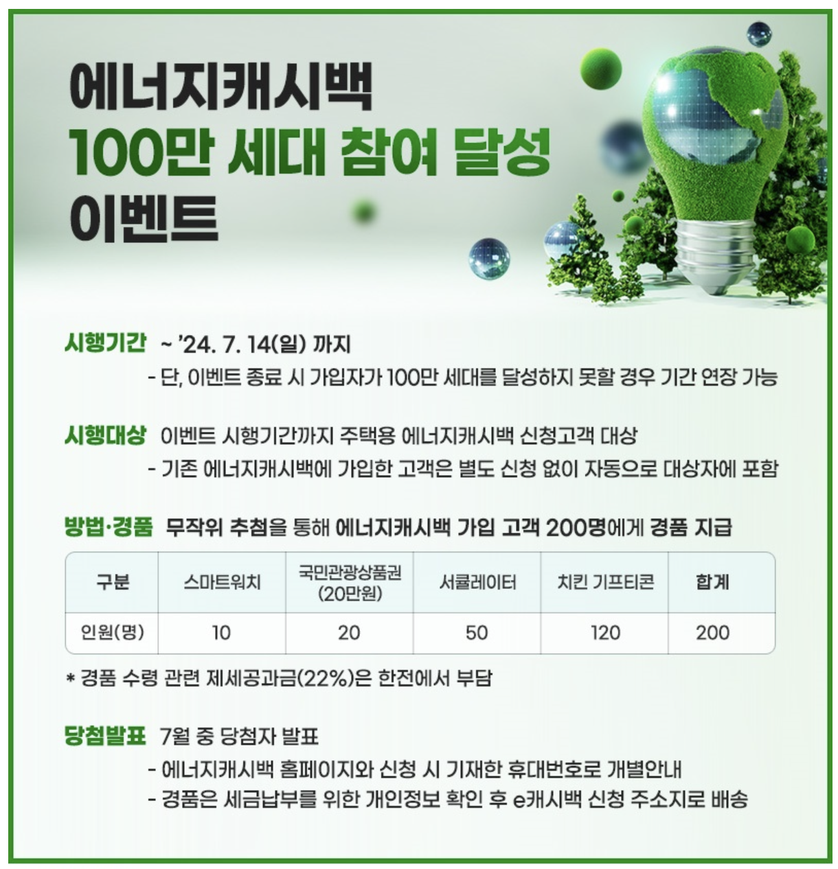 지급방법 : 매월 산정된 캐시백은 다음달 전기요금 청구 시 반영