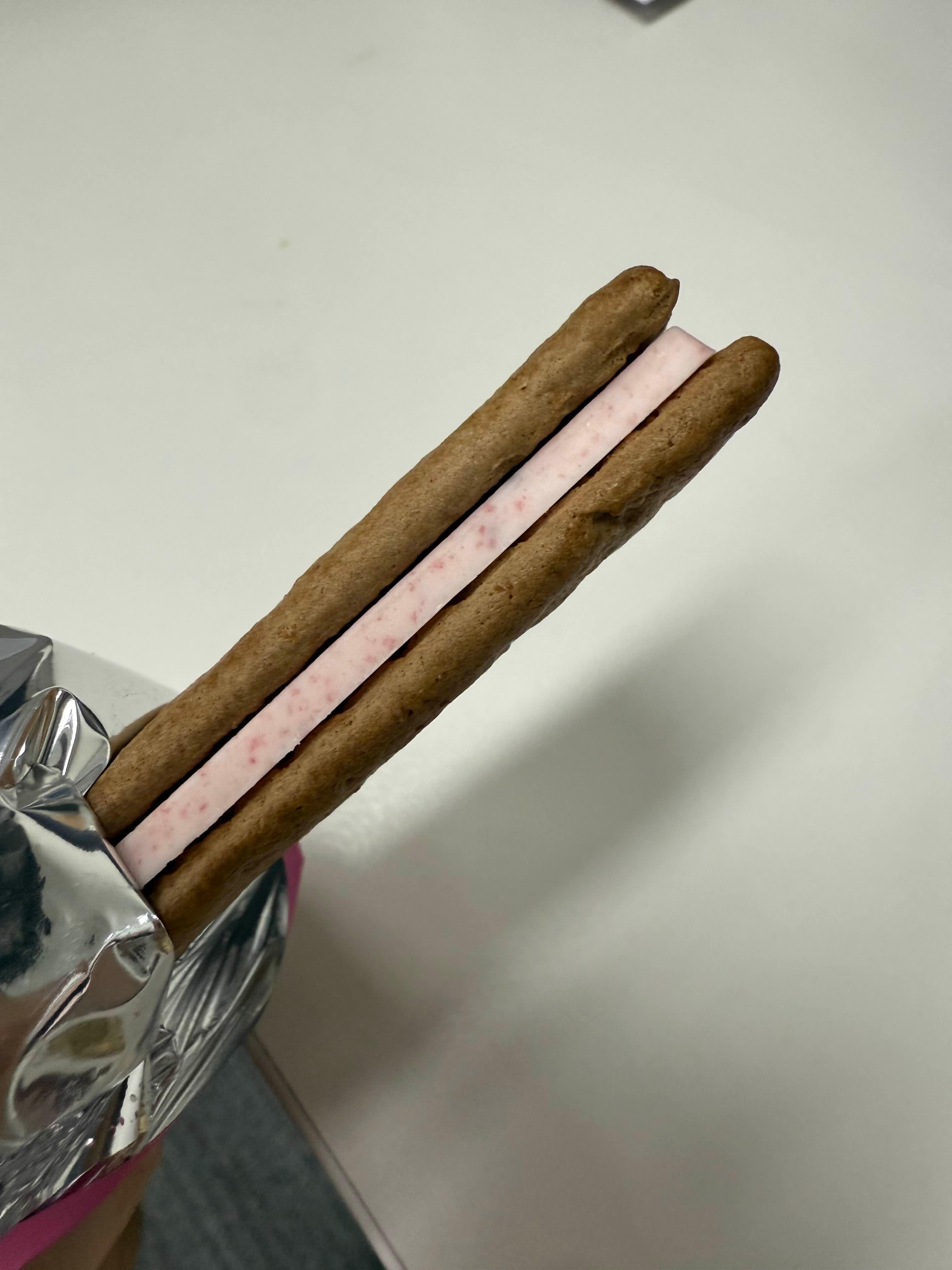 ✔️ 식감 : 크래커가 꽤 단단하게 씹히는데 크림은 부드럽게 녹아 균형이 좋아. 딸기 과즙 알갱이 같은 작은 씹힘이 있어 달달함 속에 포인트가 느껴져.
