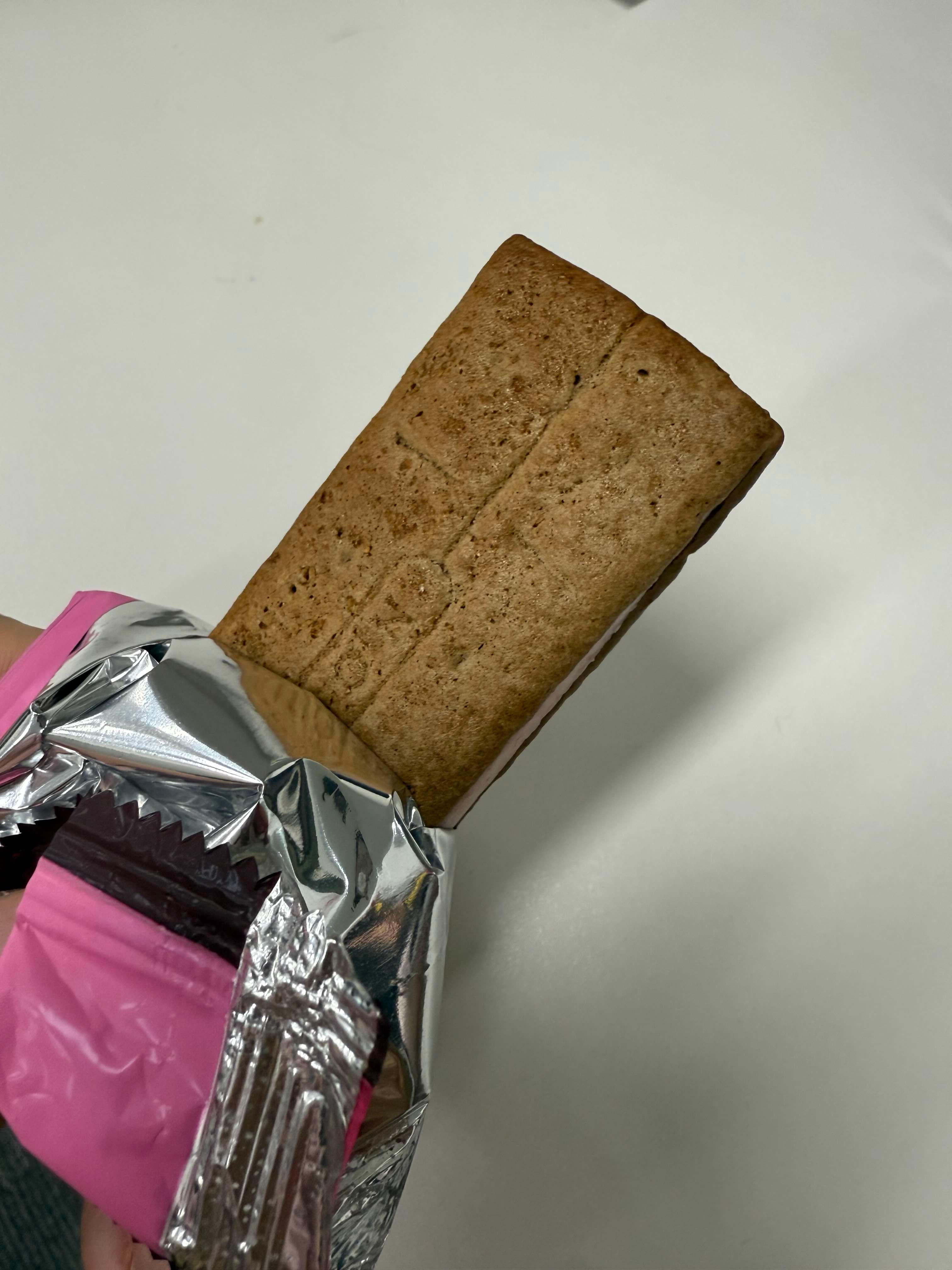 ✔️ 식감 : 크래커가 꽤 단단하게 씹히는데 크림은 부드럽게 녹아 균형이 좋아. 딸기 과즙 알갱이 같은 작은 씹힘이 있어 달달함 속에 포인트가 느껴져.