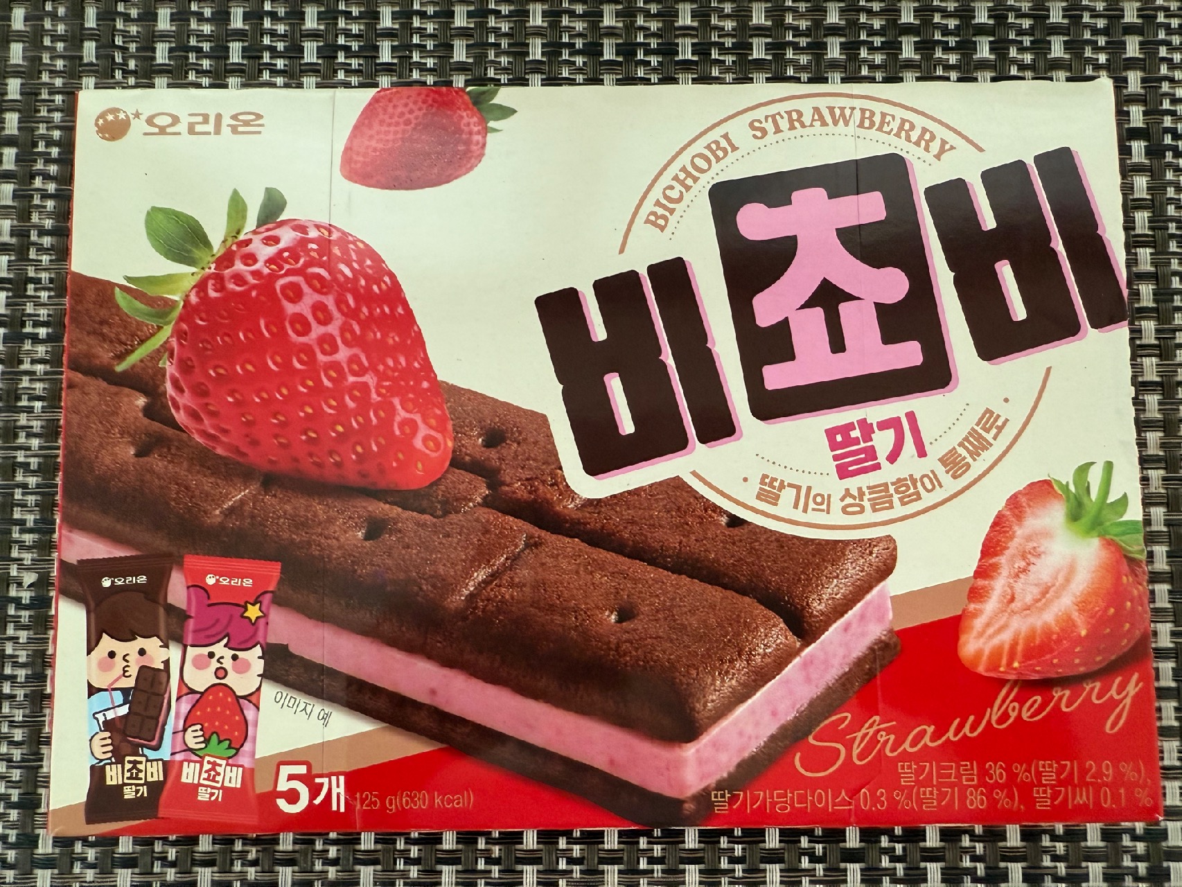 “추억의 비쵸비가 딸기 옷 입고 돌아왔다! 바삭한 카카오 크래커 사이에 딸기 크림이 들어간 달콤한 과자 🍓”