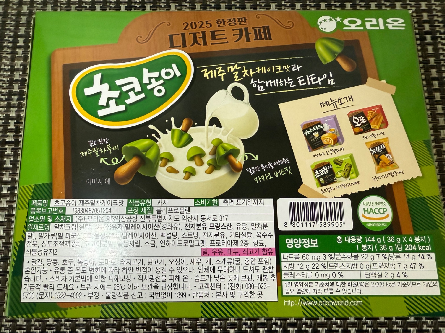 • 제품명 : 오리온 초코송이 제주말차케이크맛