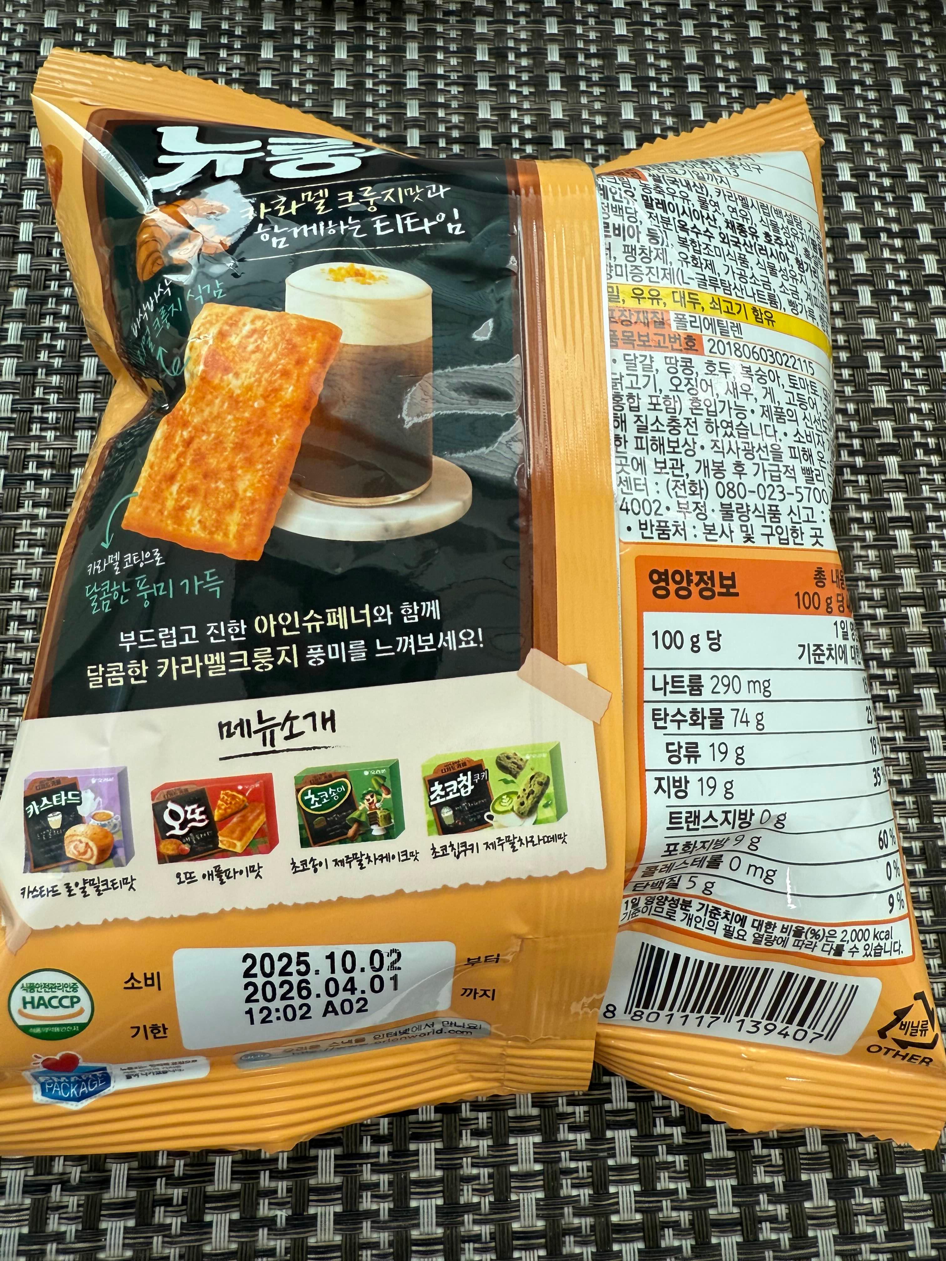• 제품명 : 오리온 뉴통지 카라멜크롱지맛