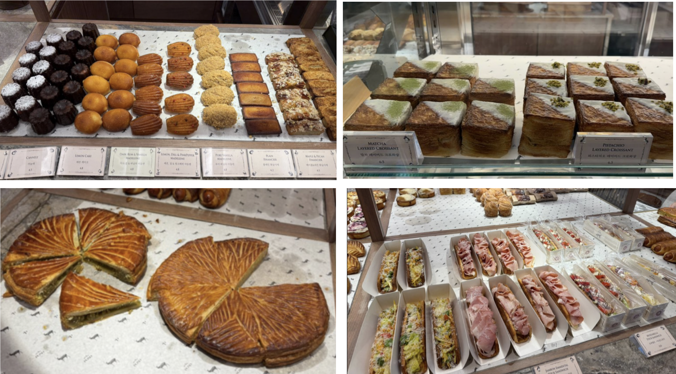 • 모든 베이커리가 **‘정렬된 예술작품’**처럼 진열되어 있음
