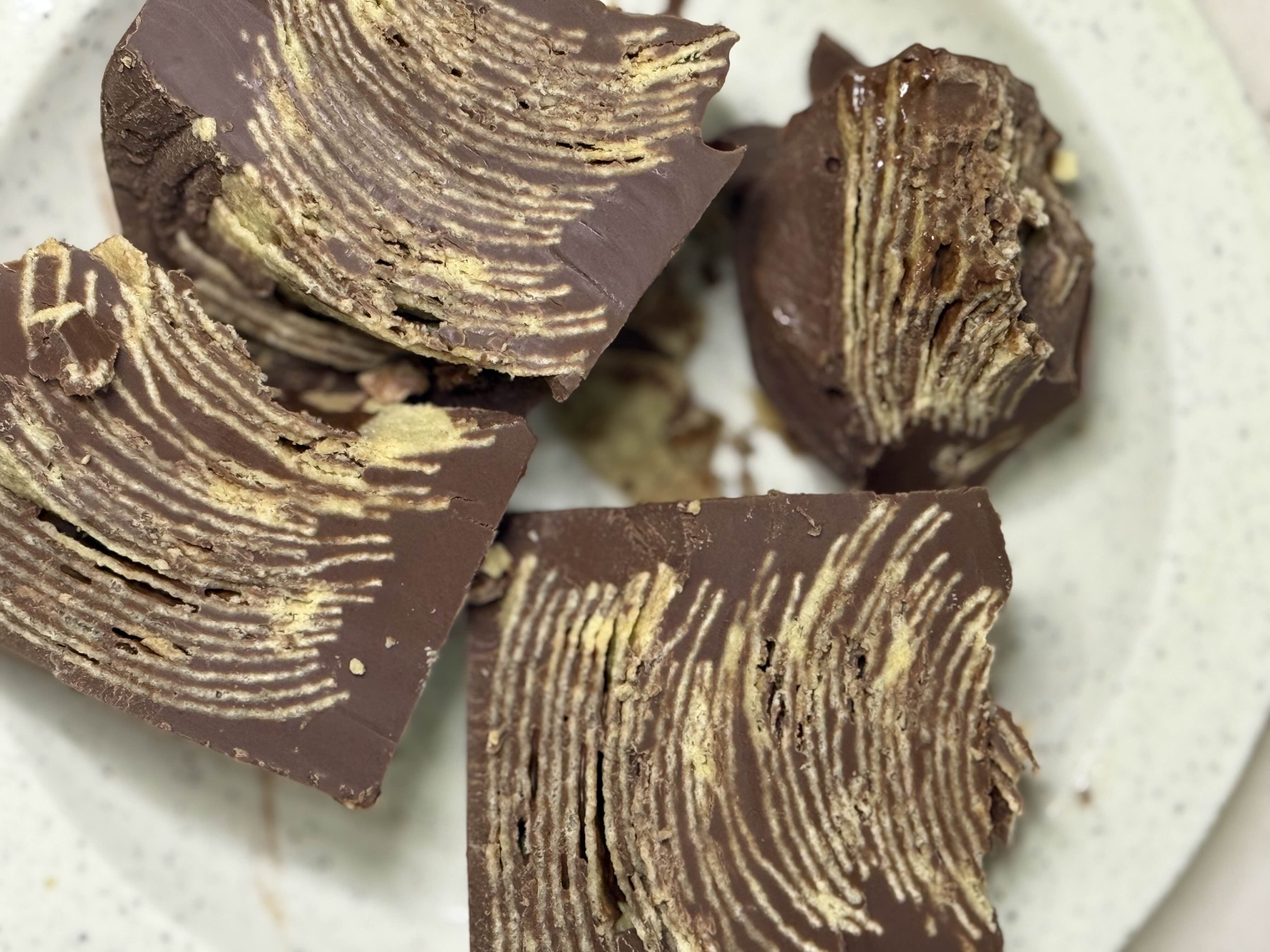 초코 바른 프링글스를 계속 쌓아주면