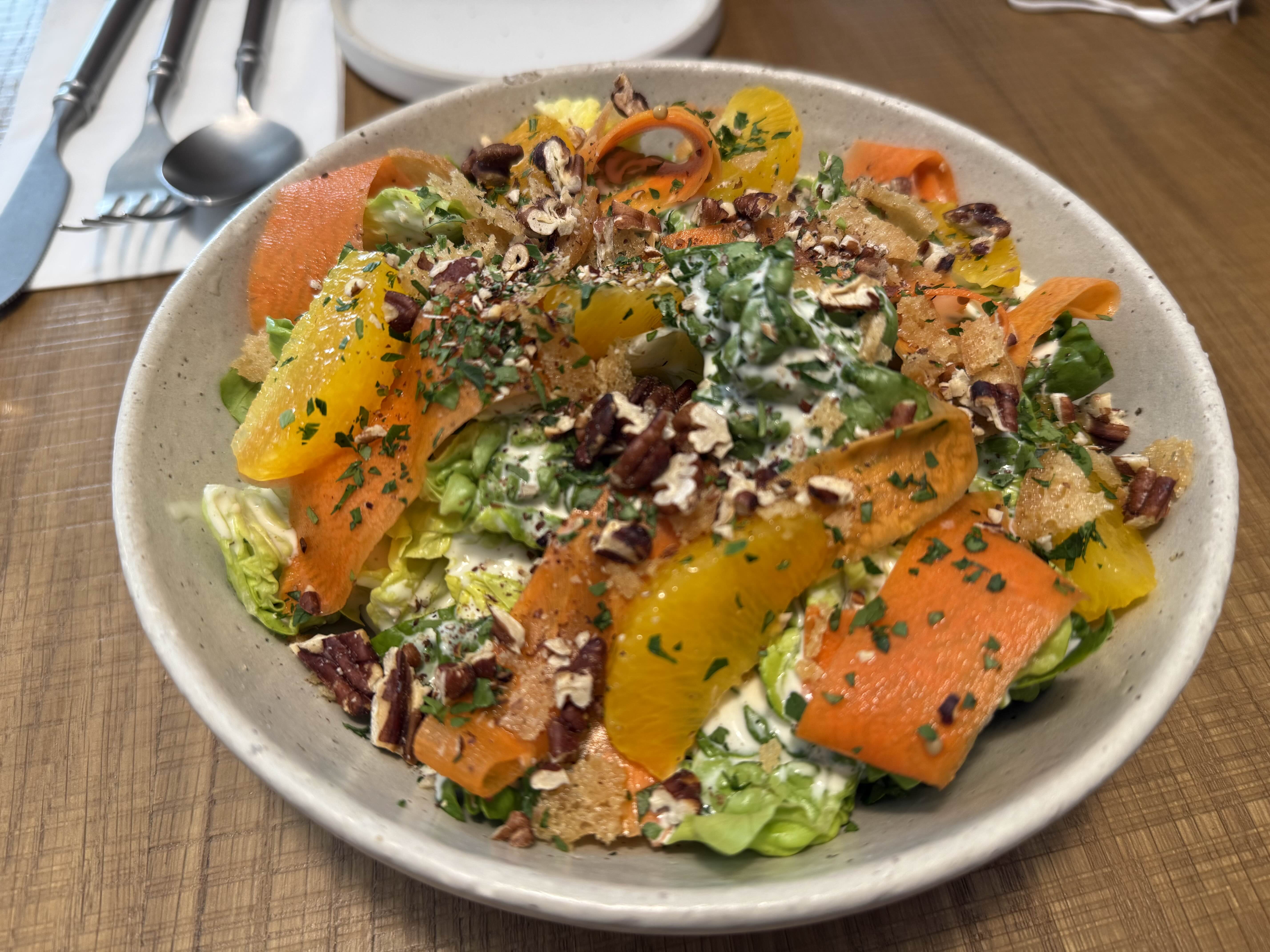 • 오렌지, 당근 리본, 견과류, 그리고 상큼한 허브 드레싱
