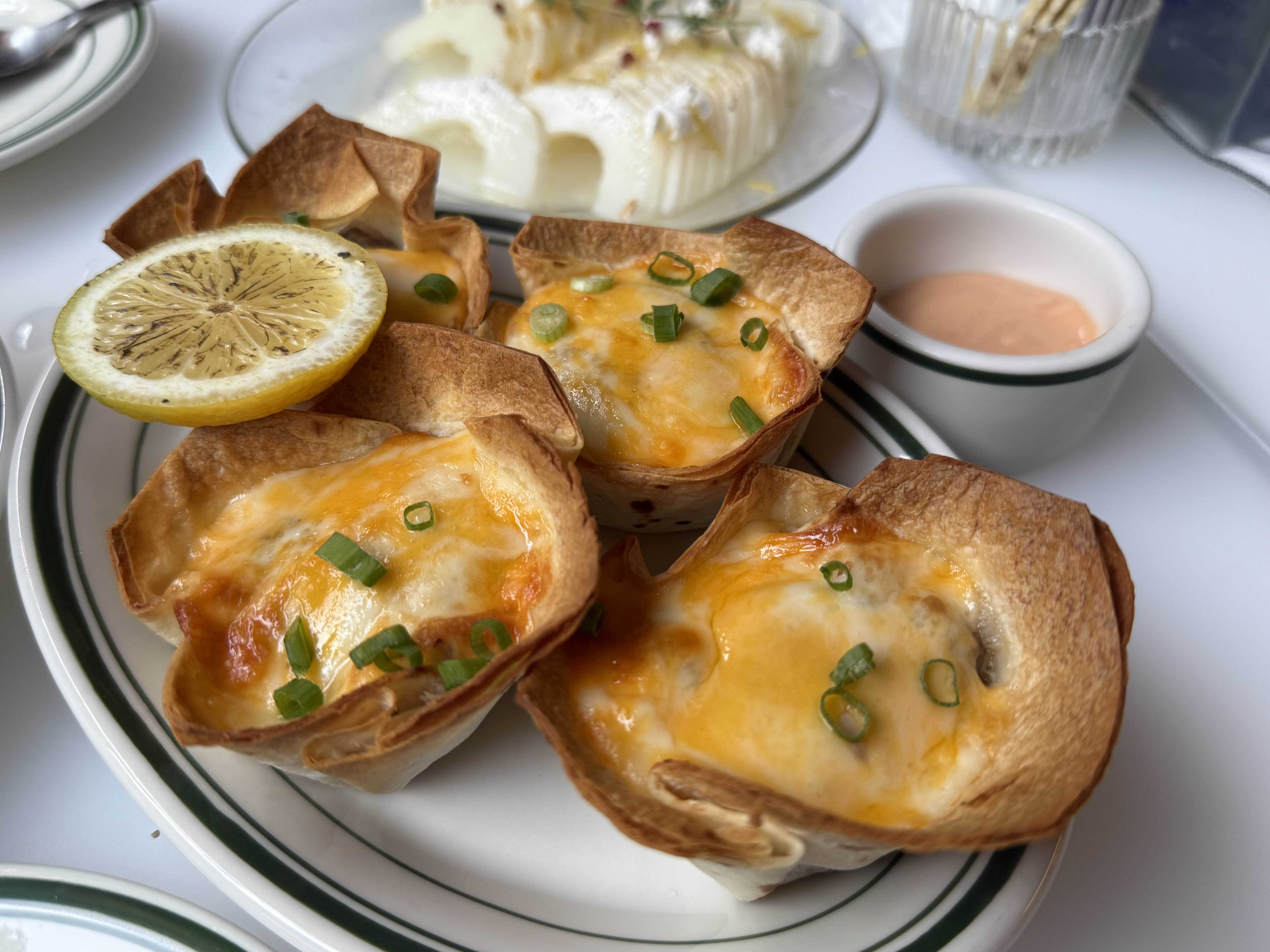 작고 귀여운 머핀형 치즈볼 같은 느낌. 바삭하게 구워진 또띠아 컵 안에 치즈와 다진고기 듬뿍 들어있고,