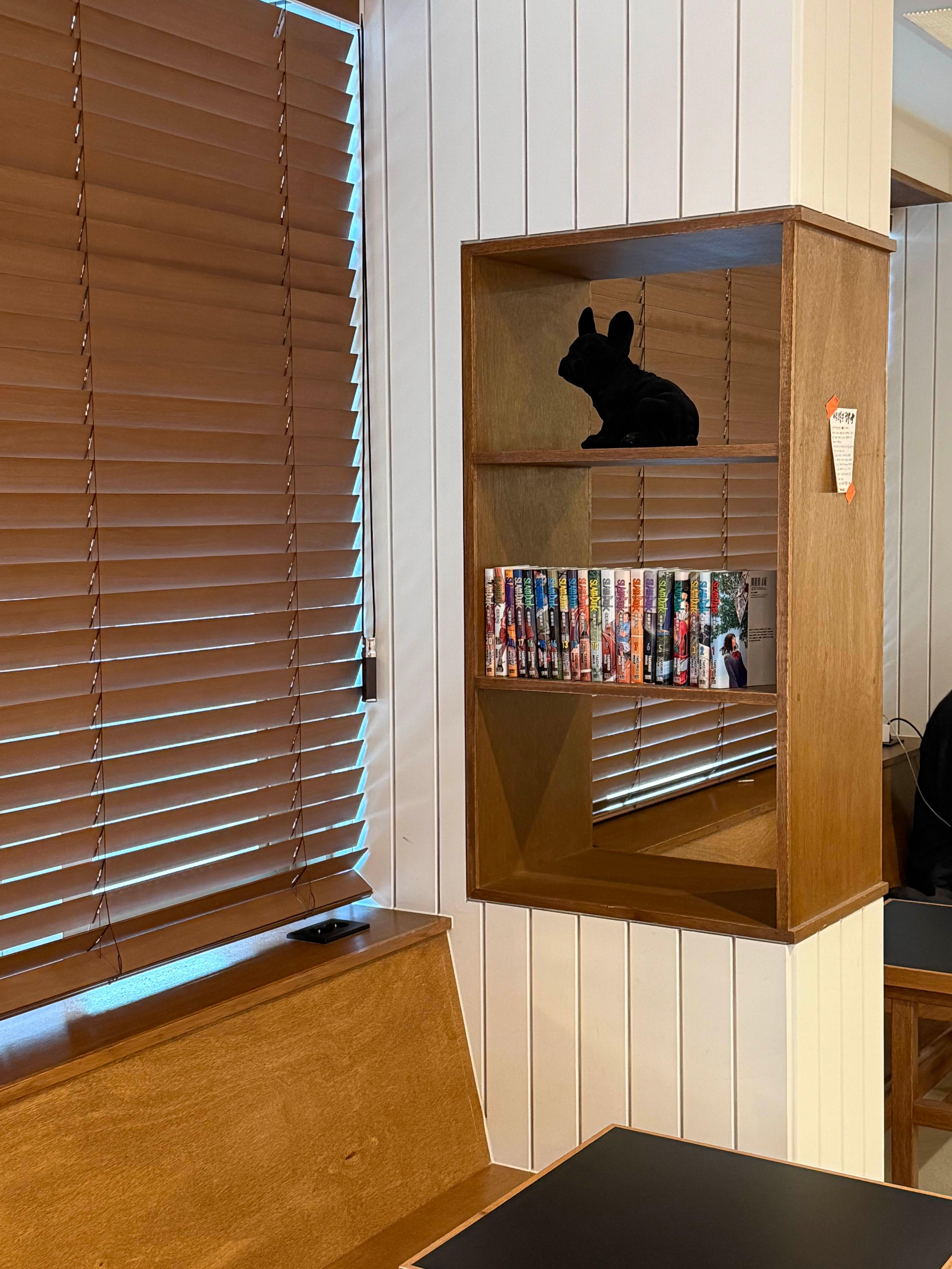 • 분위기: 나무 책장과 원목 테이블이 어우러진 서재 같은 카페. 조용하고 차분해서 책 읽기, 작업하기, 모임하기 모두 적당해.
