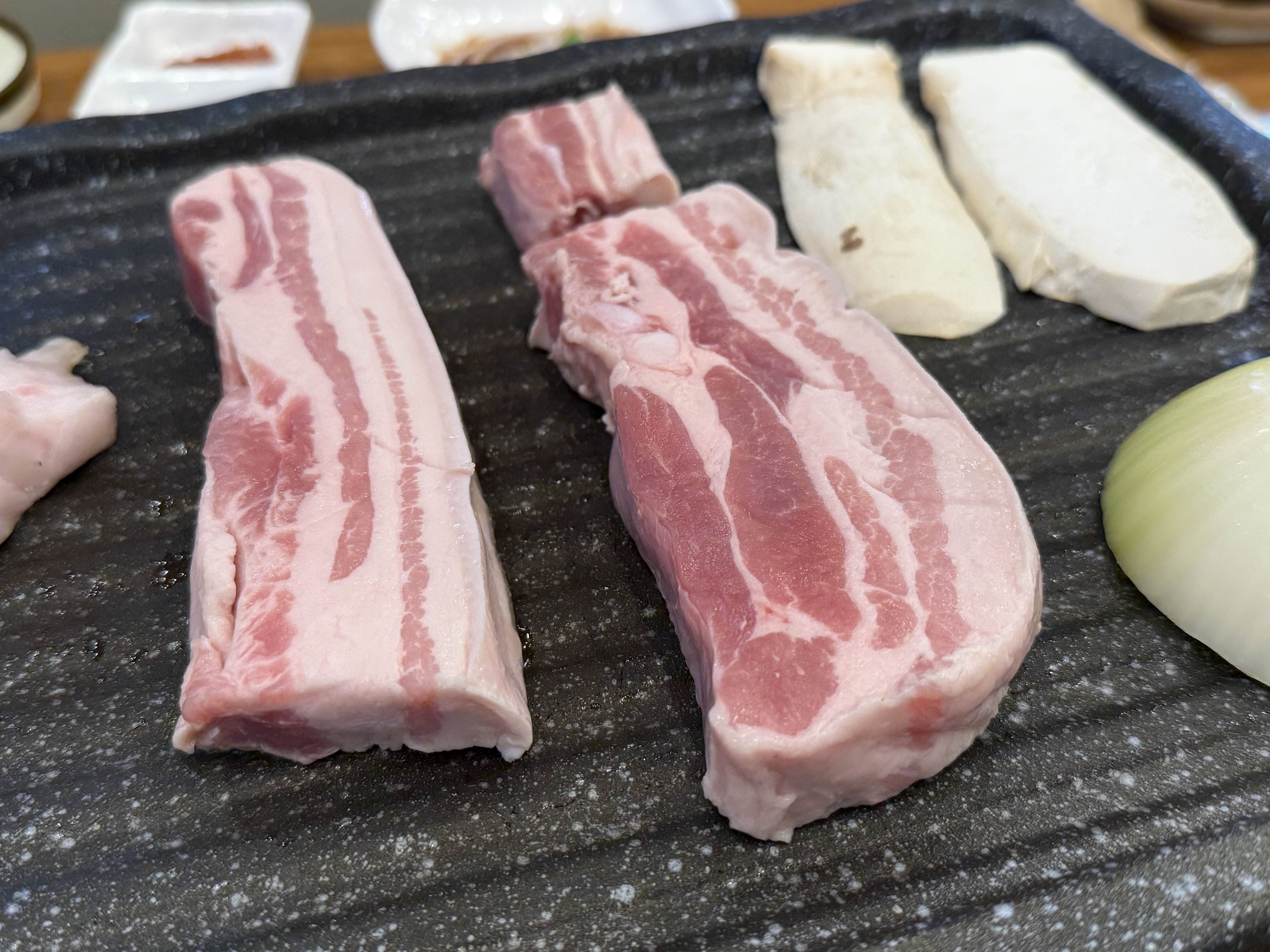 두툼한 생삼겹과 된장찌개의 조합, 진심으로 고기 먹고 싶을 땐 월수금통돼지!