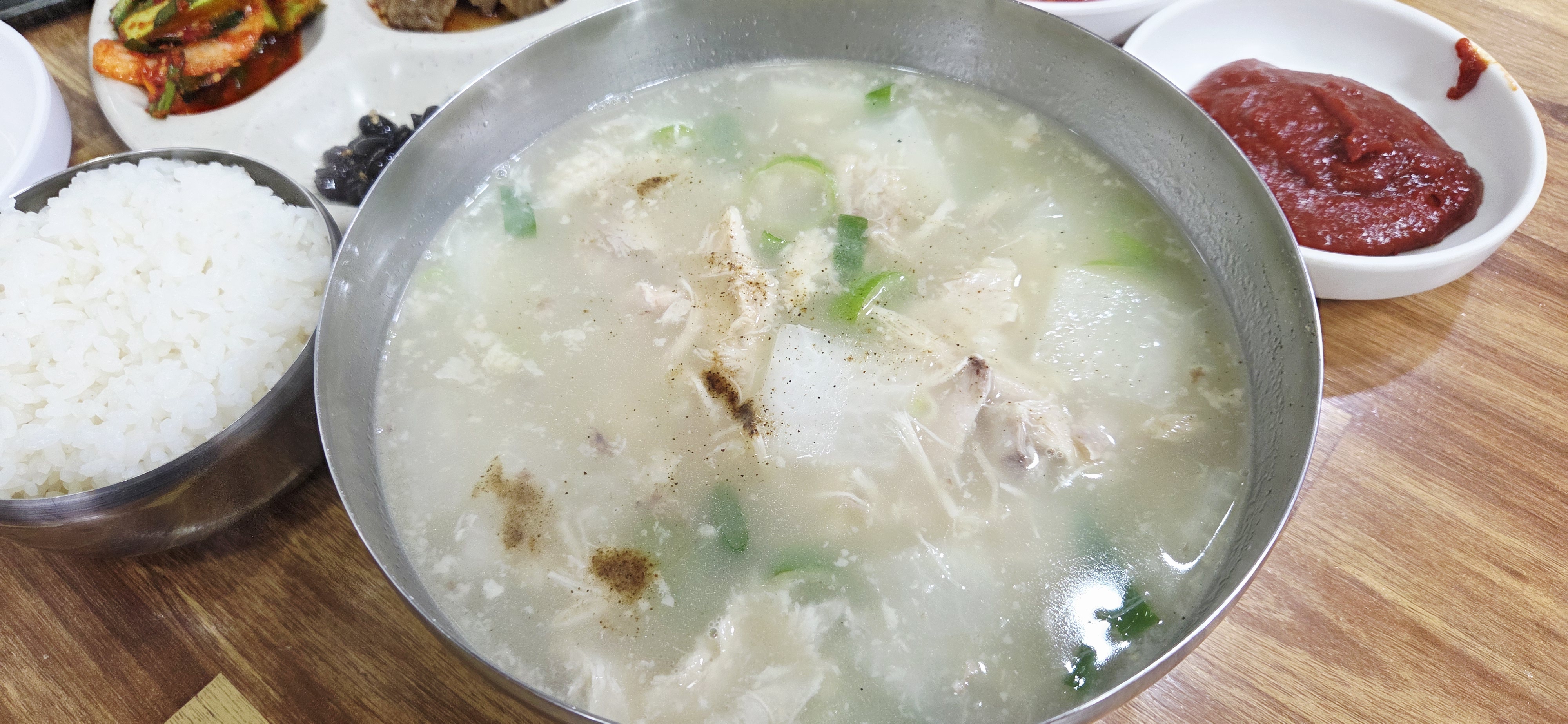 • 닭곰탕 주문 시 후추와 고추 다대기를 곁들여