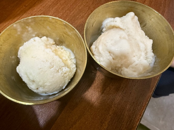 식사 후 제공되는 디저트. 고소한 맛과 시원함이 완벽한 마무리를 선사해요.