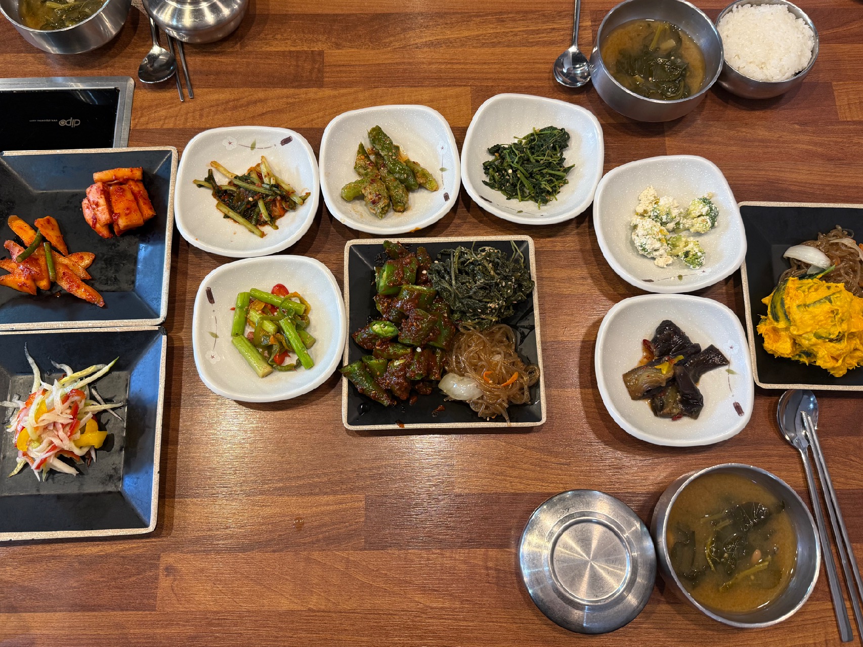 • 단호박샐러드, 나물무침, 잡채, 가지볶음, 두부무침, 김치 등 다양하고 깔끔한 반찬들이 기본 세팅!