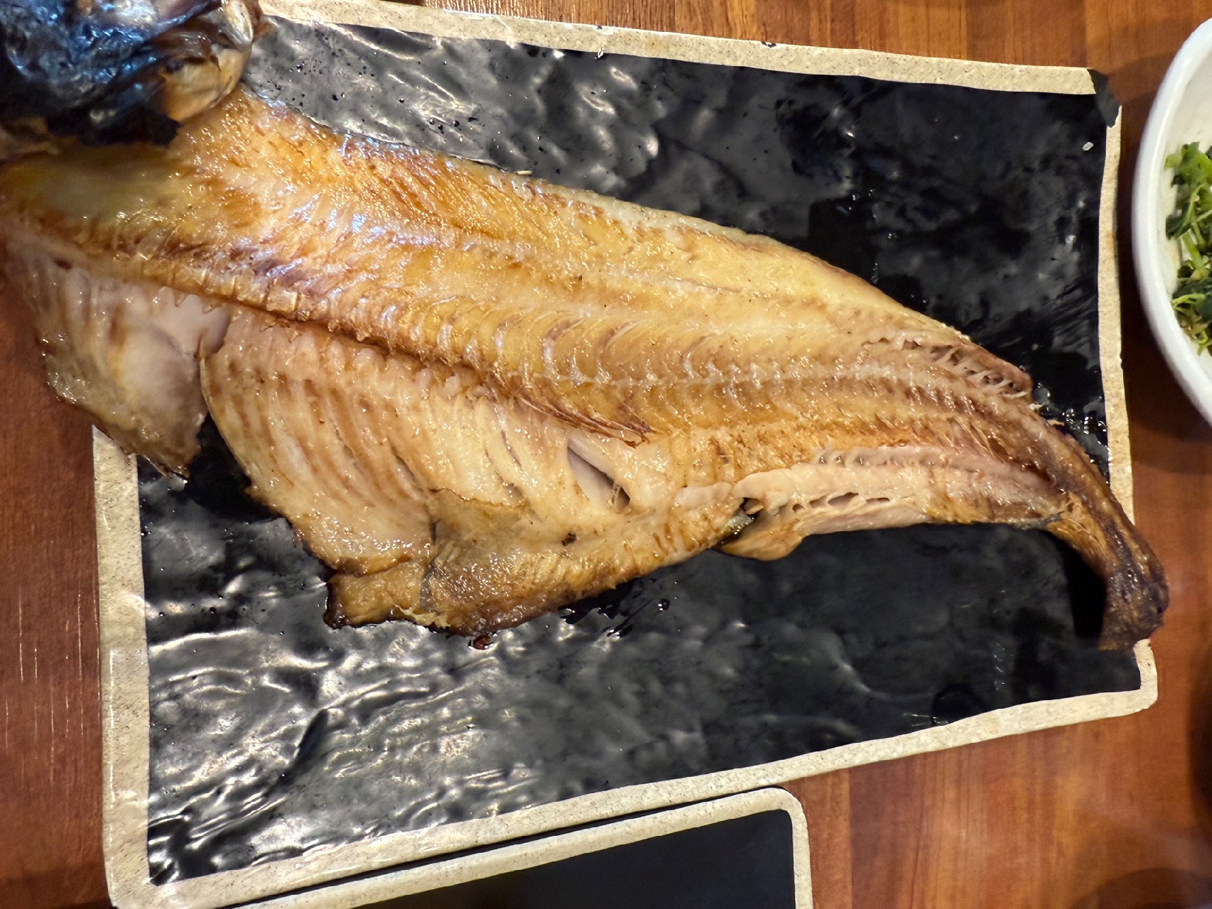 노릇하게 구워져서 껍질은 바삭하고, 속살은 촉촉하고 담백했어. 생선구이 특유의 고소한 맛이 밥이랑 너무 잘 어울려서 밥도둑 인정!