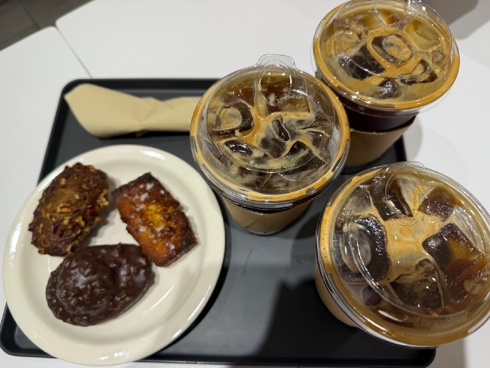 ✔️ 아이스 아메리카노 (2.5) – 가성비 끝판왕. 산미가 강하지 않고 깔끔한 맛이라 디저트랑 같이 먹기 딱 좋았다. 세 잔을 주문했는데 다들 만족스러워함 👍