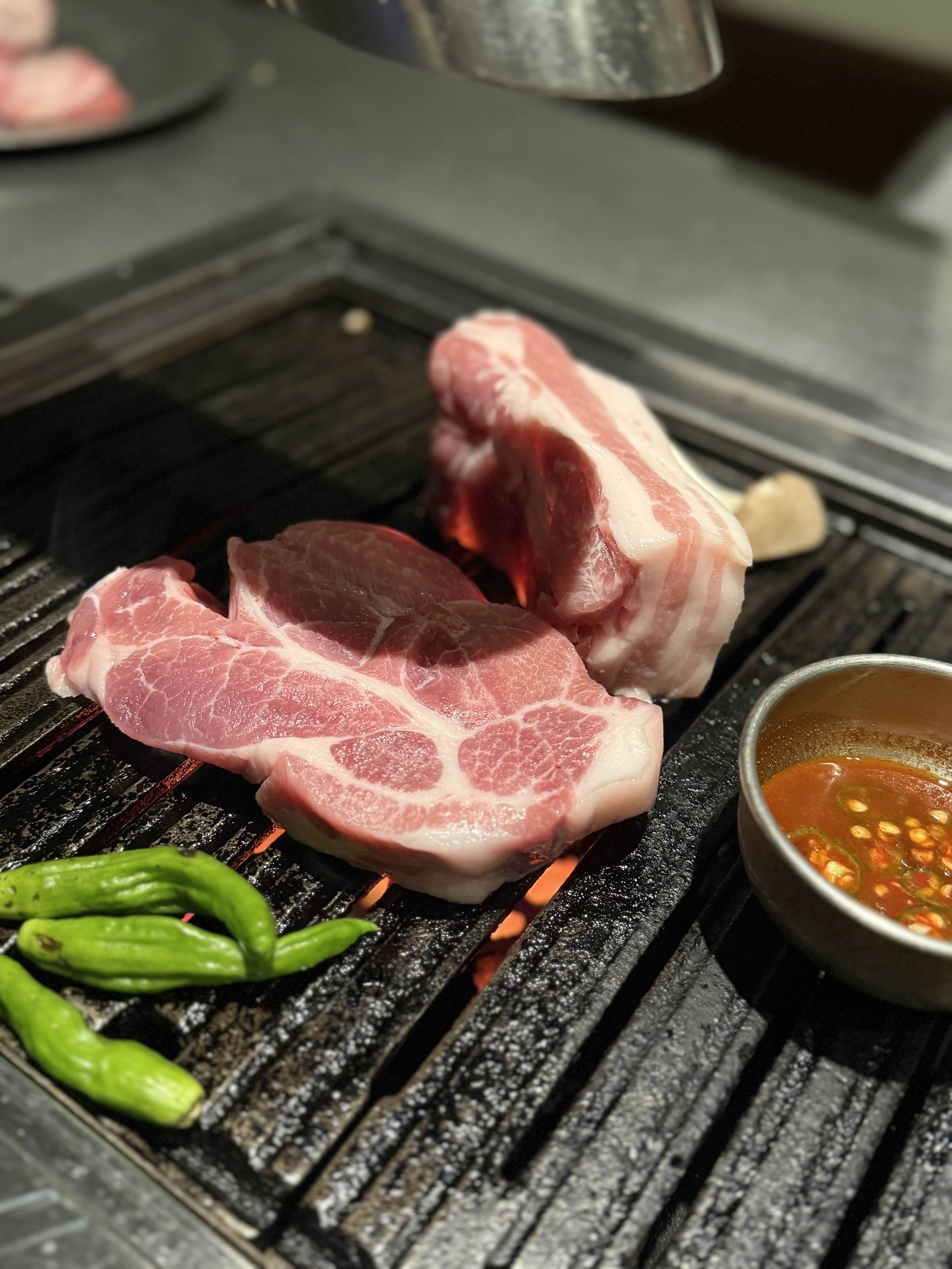 ✔️ 삼겹살(19,000원) – 겉은 바삭, 속은 육즙 폭발.