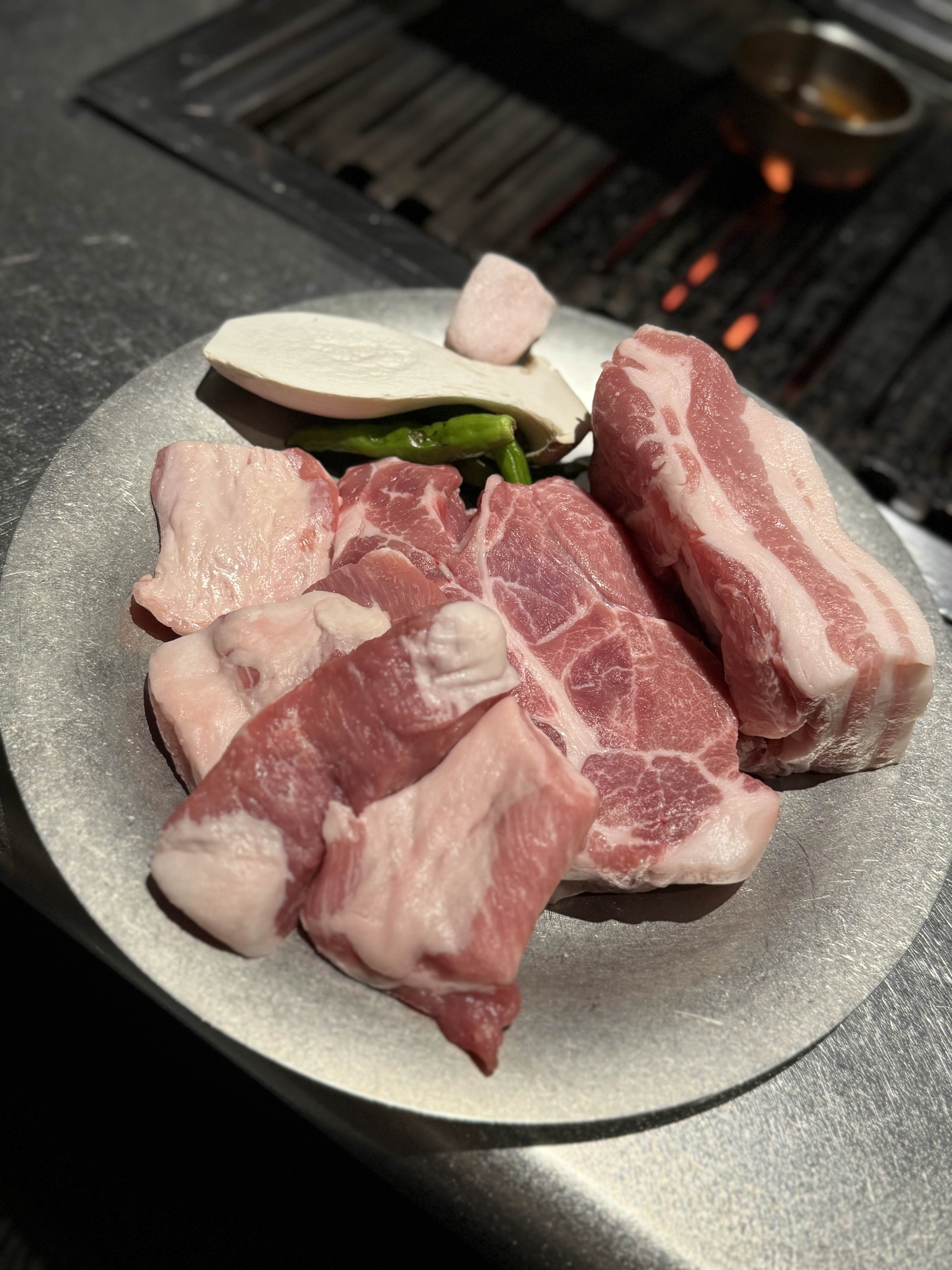 ✔️ 녹 돼지 한 판(57,000원) – 삼겹살, 목살, 가브리살 세 가지 부위가 담긴 시그니처 세트.