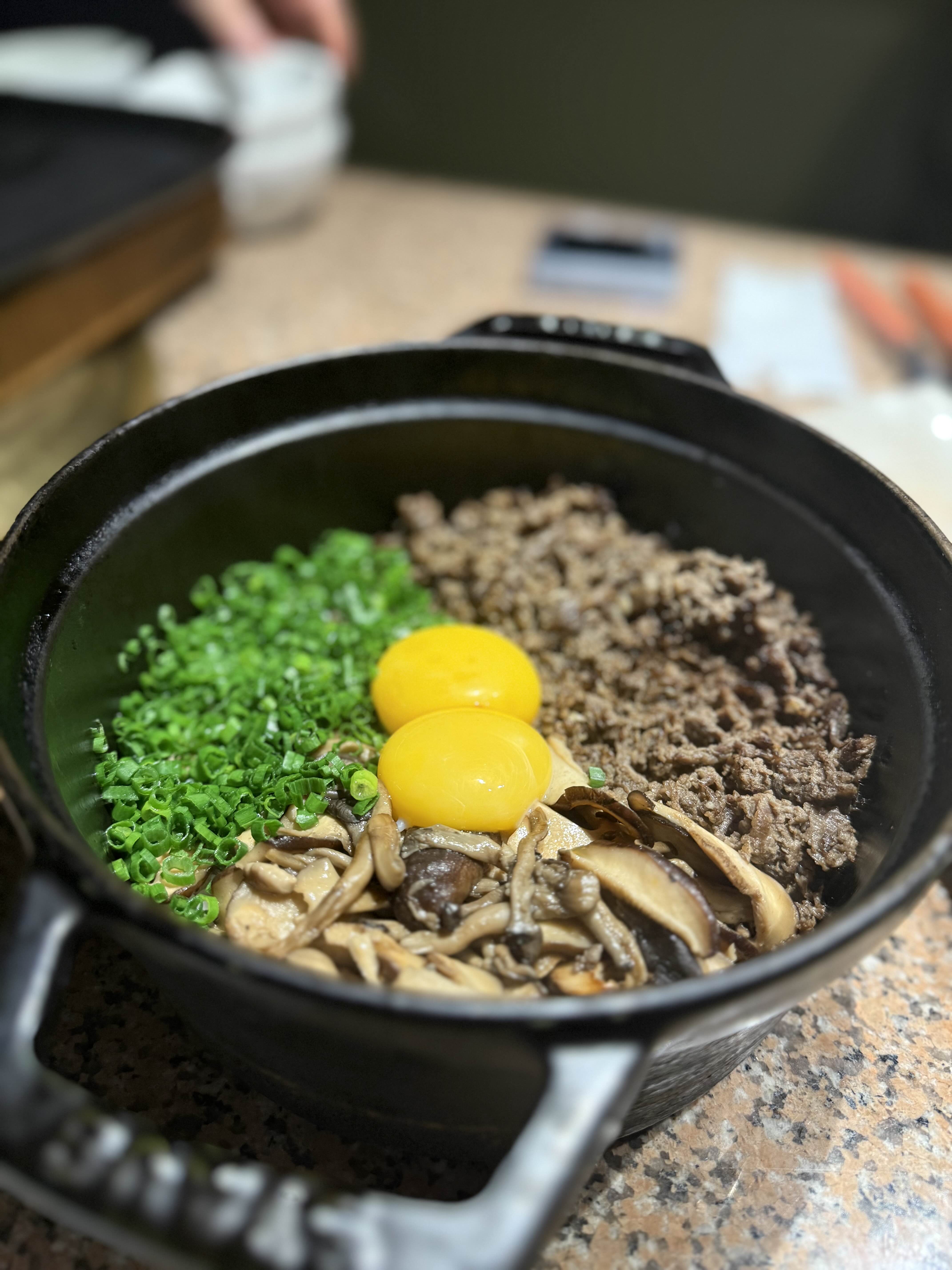 마지막은 든든하게 돌솥밥으로 마무리. 버섯, 불고기, 노른자까지 푸짐하게 들어가 있어서 다 같이 나눠먹으며 집밥 같은 포근함을 느꼈다.