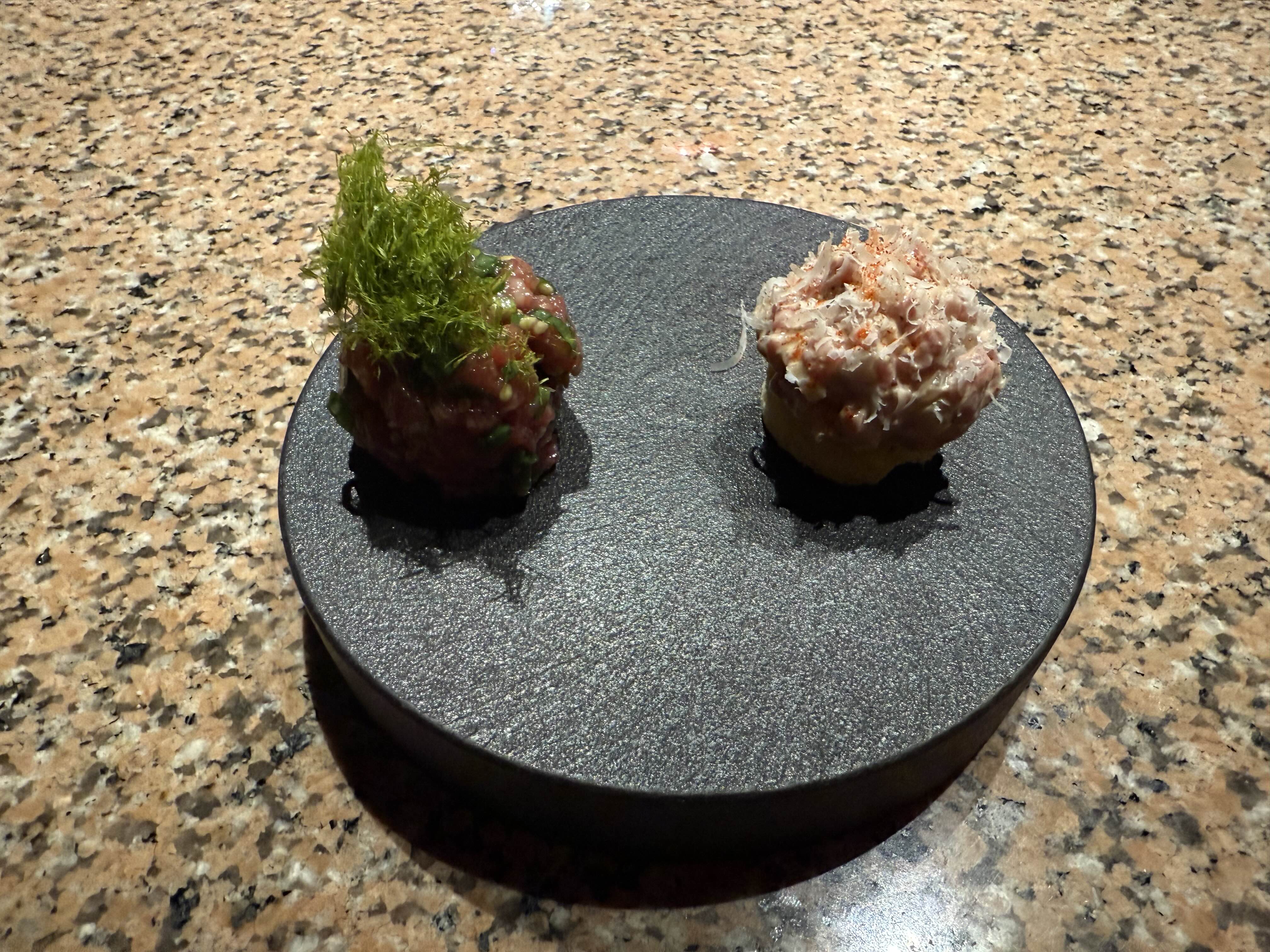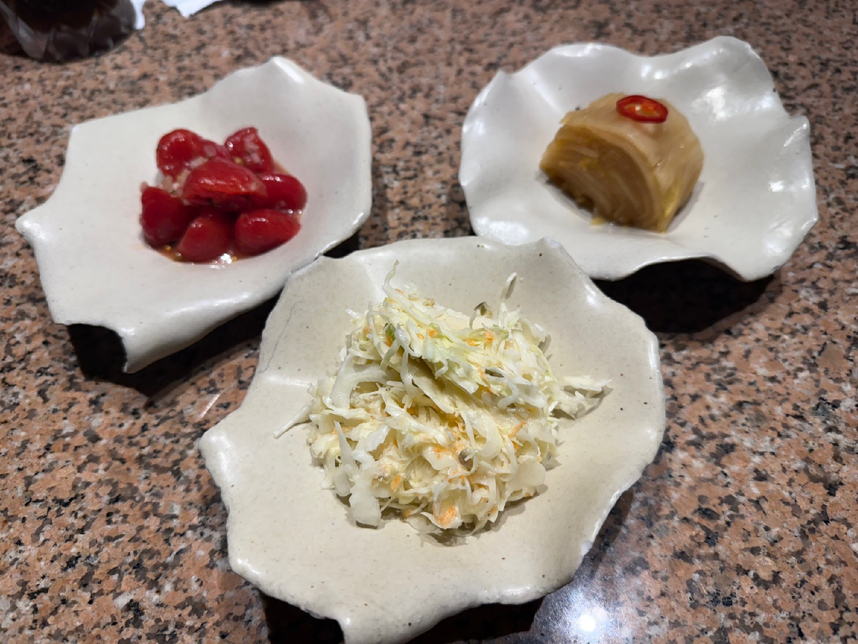 매장은 조용하면서도 세련된 분위기라서 모임하기에 딱 좋았다. 특히 바 좌석에 앉으니 셰프님이 바로 앞에서 고기를 구워주시는데, 회사 언니들과 이런 작은 호사스러운 경험을 공유할 수 있어서 더욱 특별하게 느껴졌다. 깔끔하고 프라이빗한 분위기 덕분에 대화도 잘 이어졌고, 음식 나올 때마다 다들 감탄사 연발!
