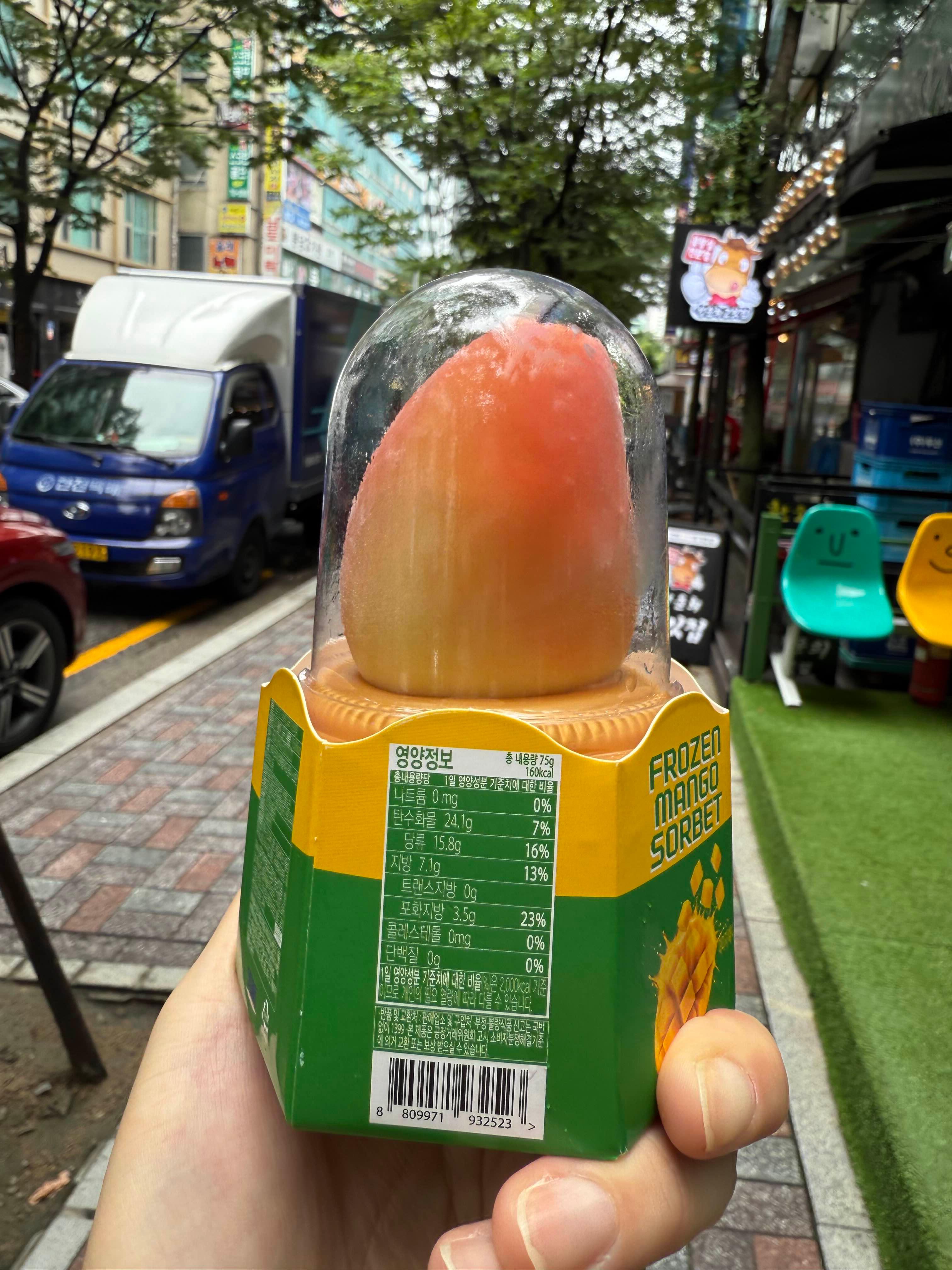 안쪽 노란 소르베 부분은 부드럽게 녹아내리면서 마치 망고 과육을 얼린 것 같은 느낌!