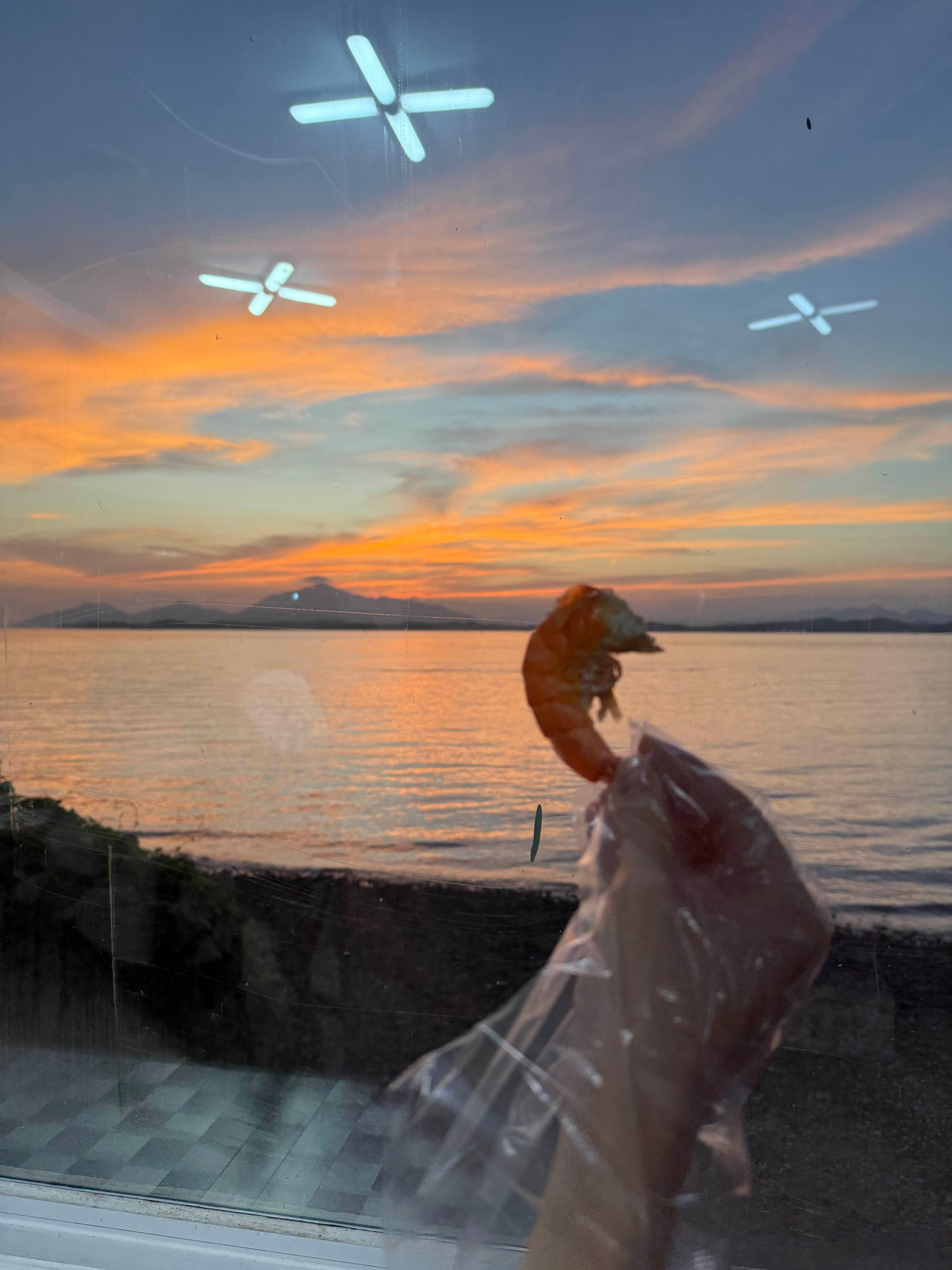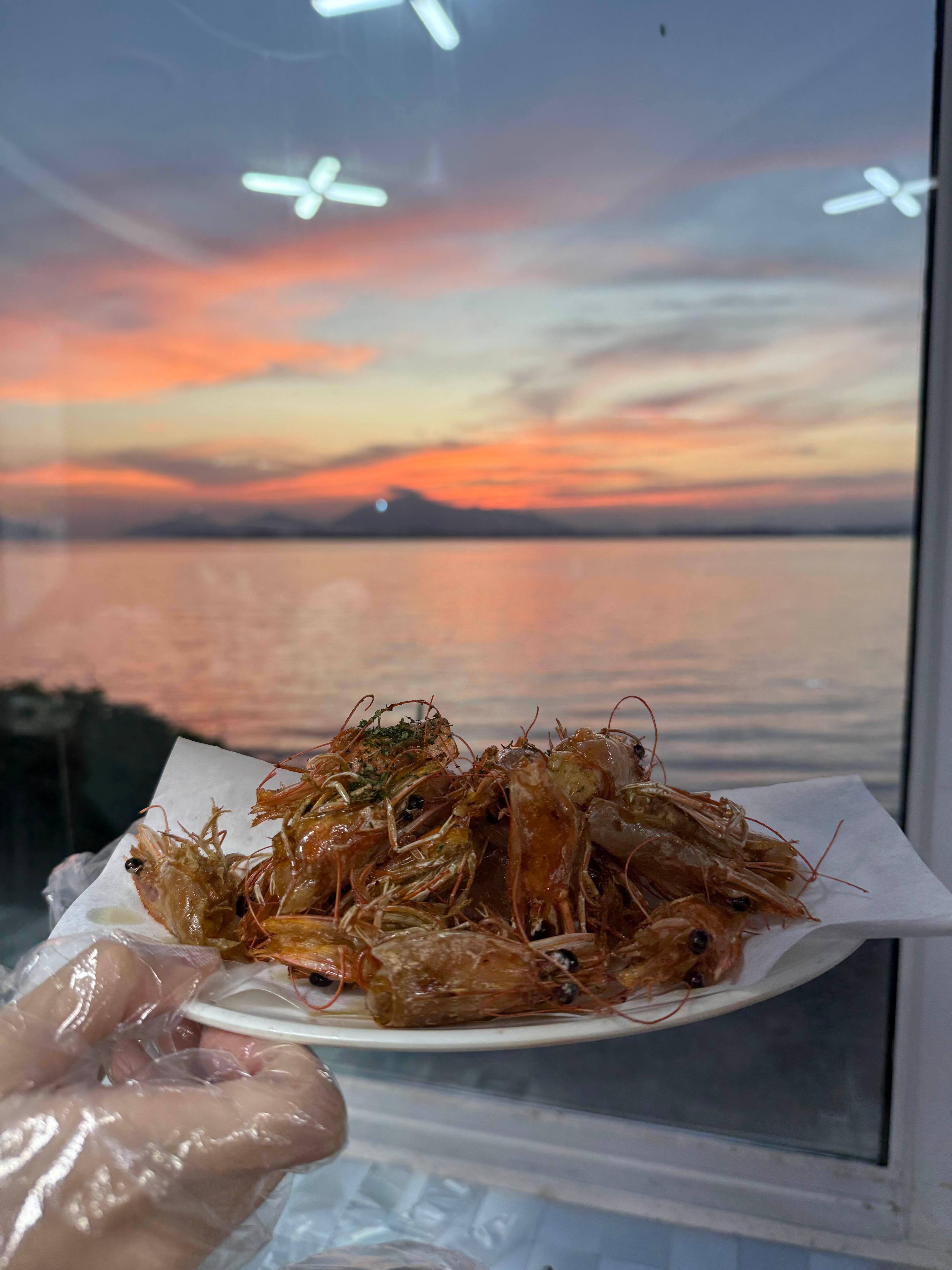 “노을 보면서 즐기는 왕새우 한 상, 그 순간만큼은 완벽했다!”