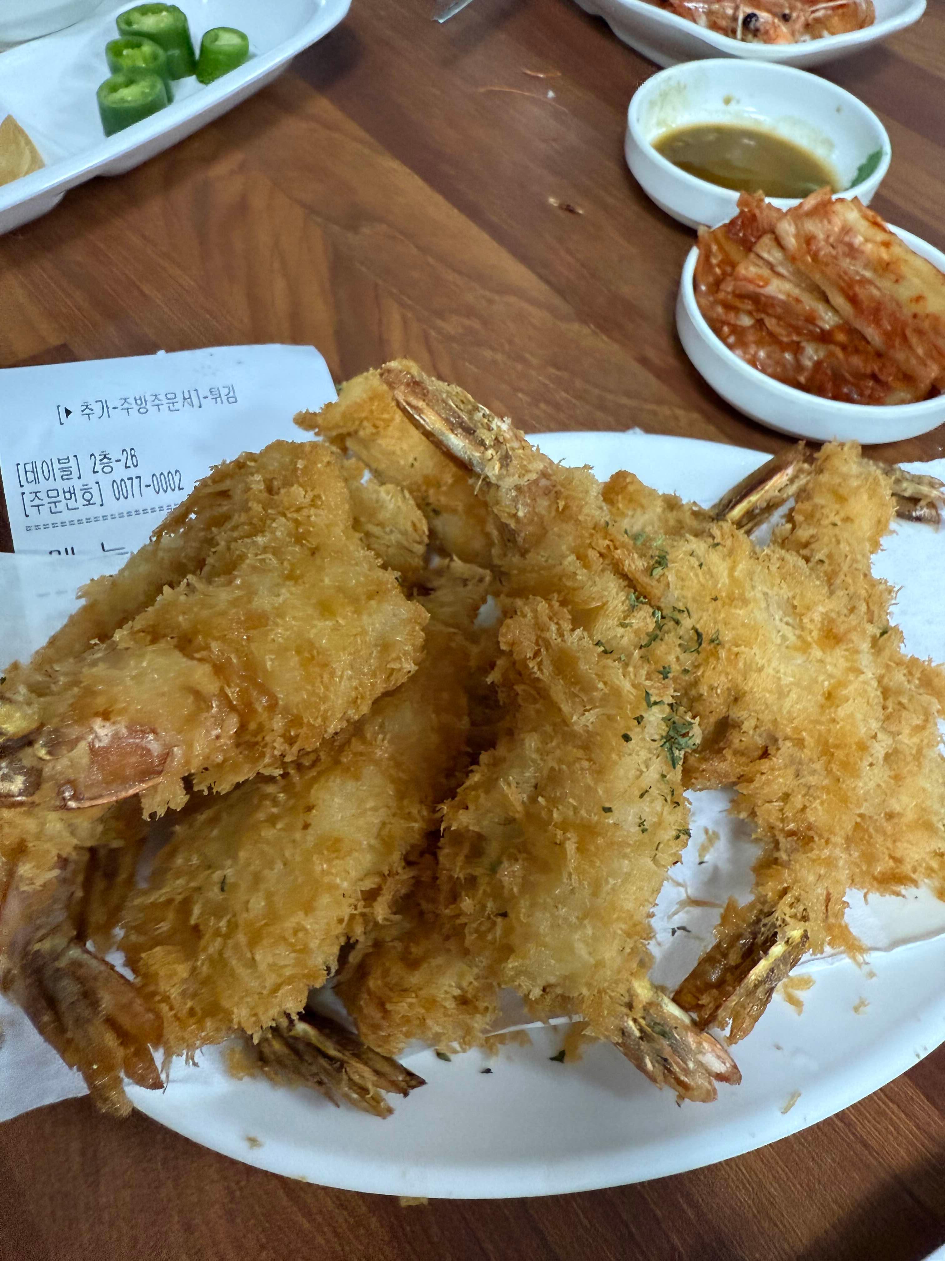 새우 요리의 기름짐을 잡아주는 아삭한 채소 반찬이 곁들여져서 리듬감 있게 먹을 수 있었어.