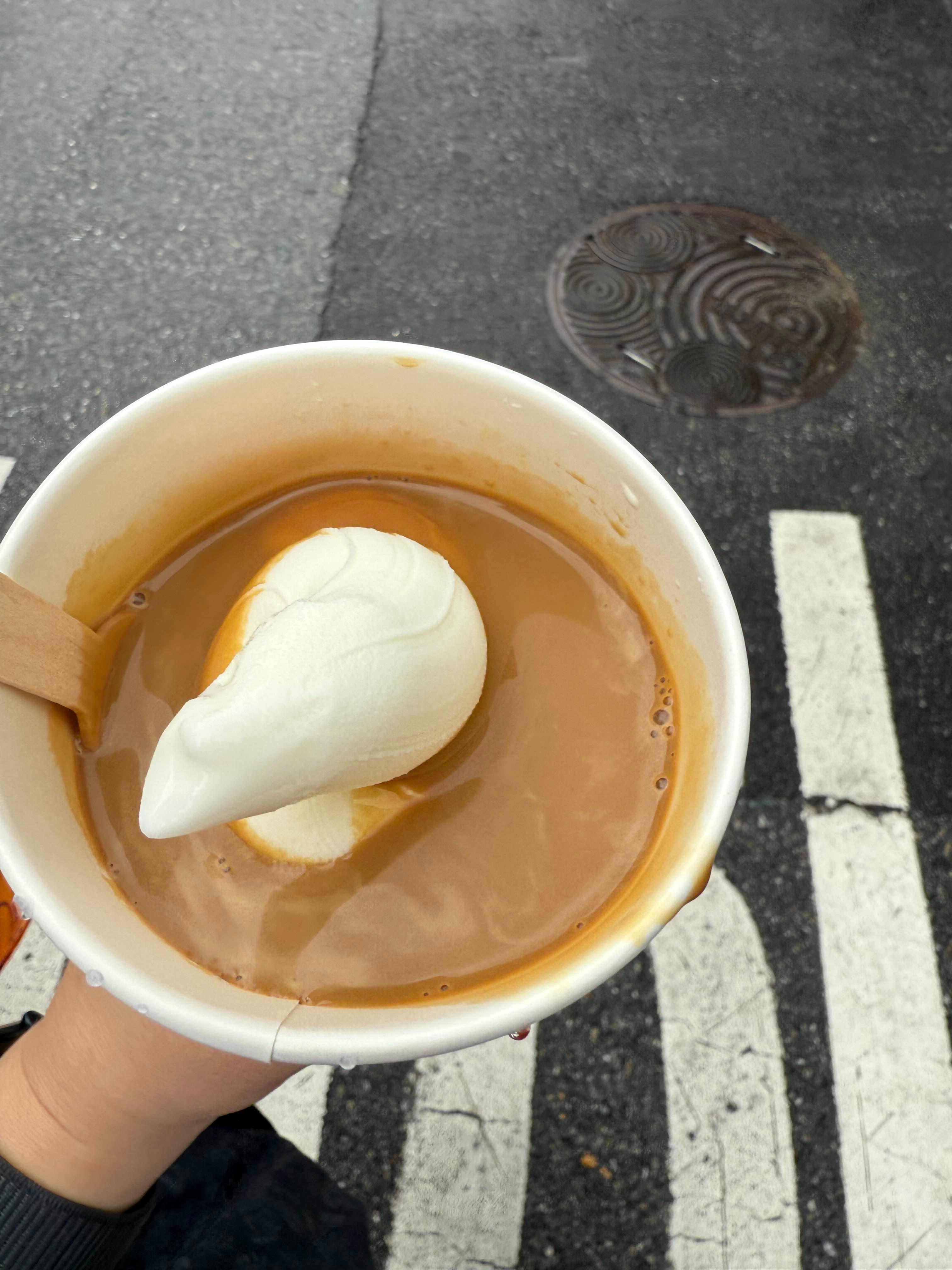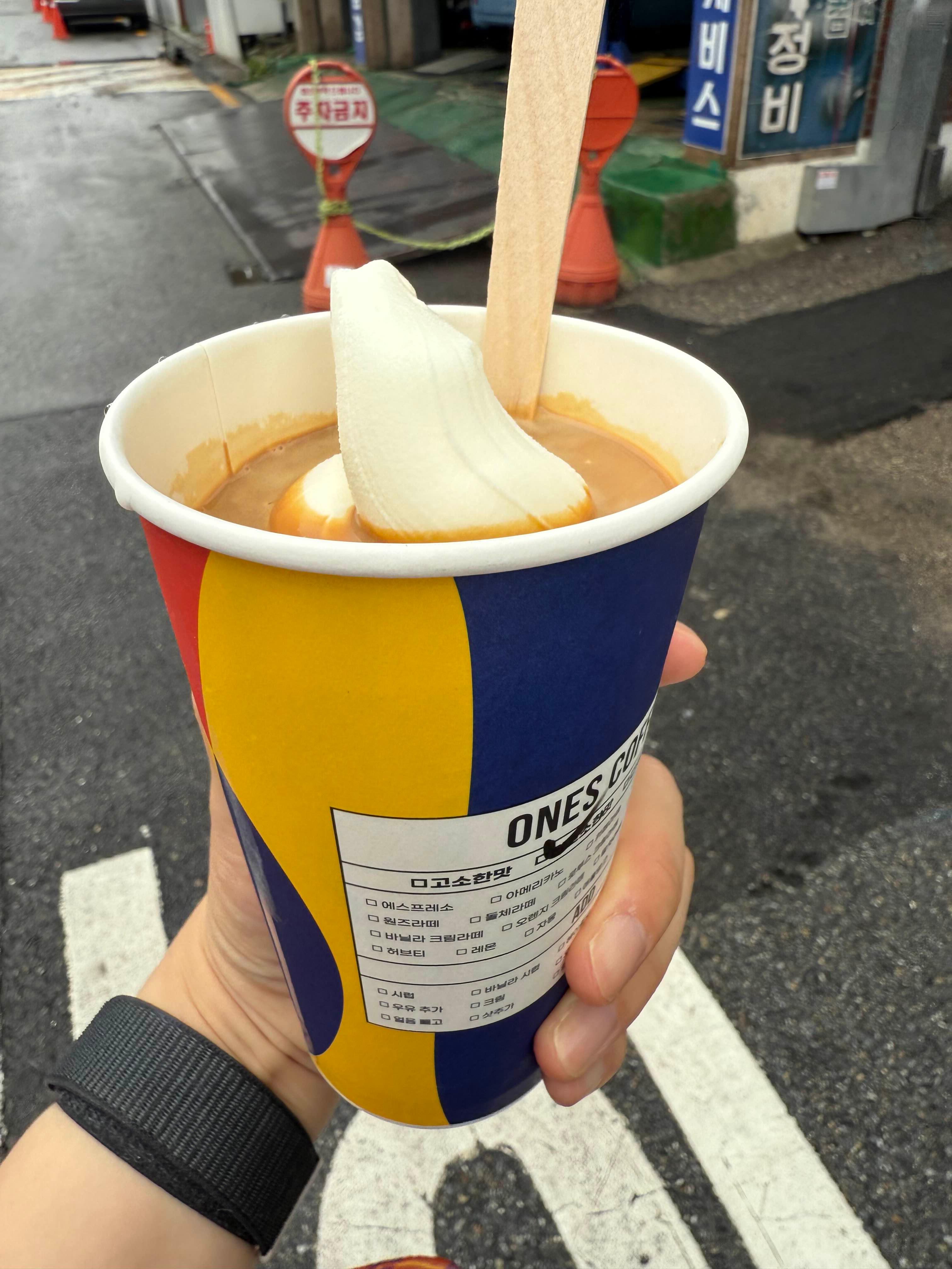 “비 오는 날, 당 충전 제대로! 아이스크림 라떼 한 잔이면 기분도 상큼하게 리셋✨”