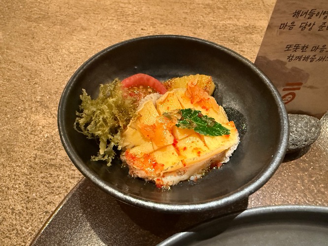 • 바당(Sea):  뿔소라,성게,돌미역,해녀된장소스/ 전복 액젓소스,토마토,제피,파인애플/