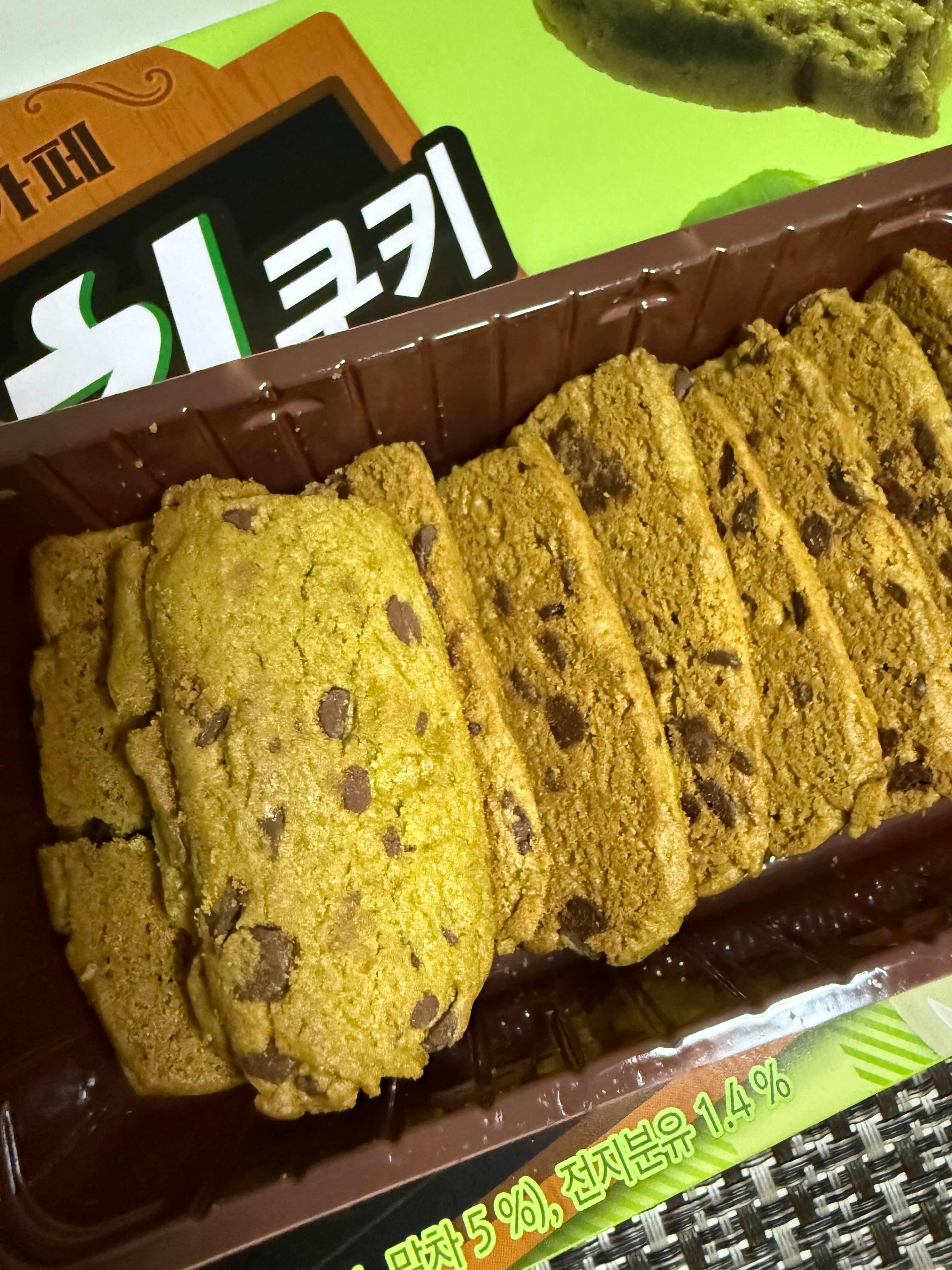 • 특징 : 진한 제주산 말차가 들어간 쿠키 반죽에 초코칩을 콕콕 박은 형태