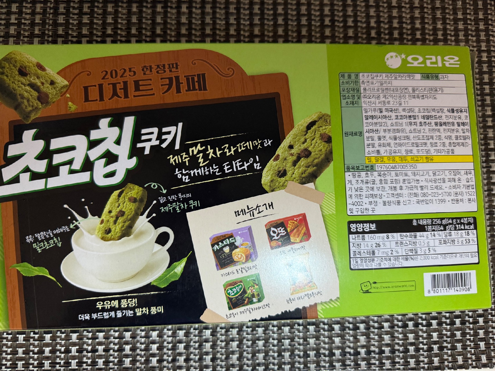 • 제품명 : 오리온 초코칩쿠키 제주말차라떼맛